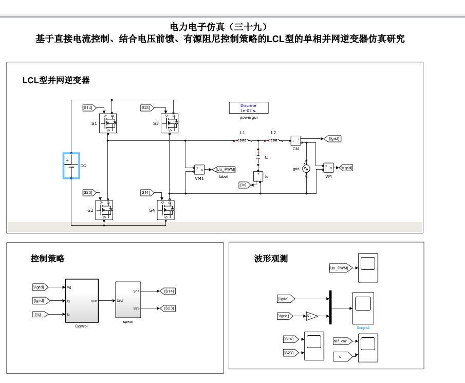 电力电子仿真(三十九)基于直接电流控制结合电压前馈和有源阻尼控制策略的LCL型并网逆变器研究(模型+设计报告+参考文献+讲解+控制策略详解)
