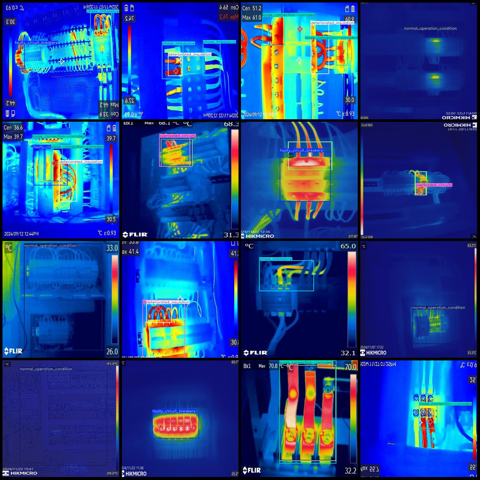 标注类别名称(注意yolo格式类别顺序不和这个对应,而以labels文件夹classes.txt为准):["deteriorated_insulation","faulty_circuit_breakers","loose_connection-corroded","normal_operation_condition","overloaded_circuits","phase_imbalance"]