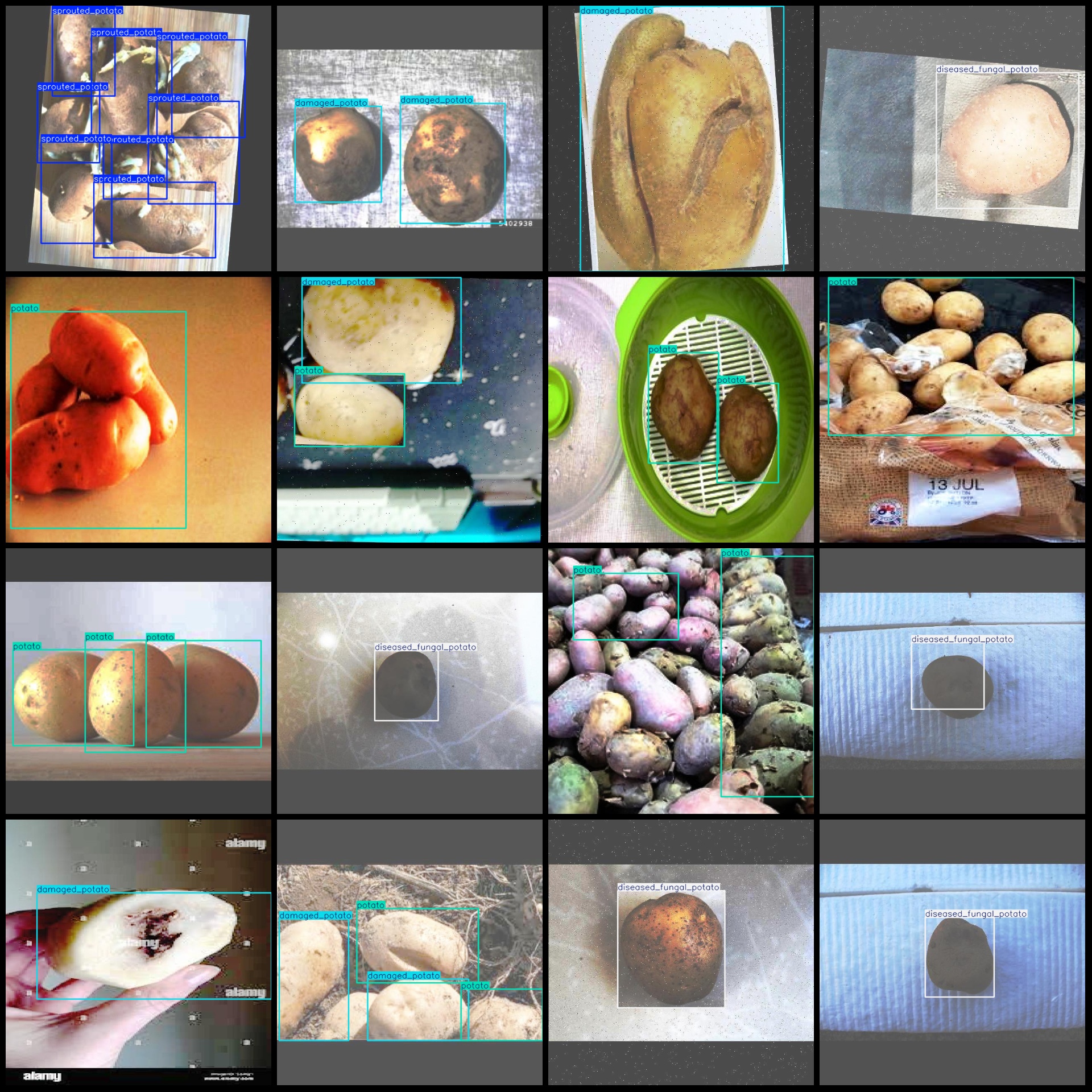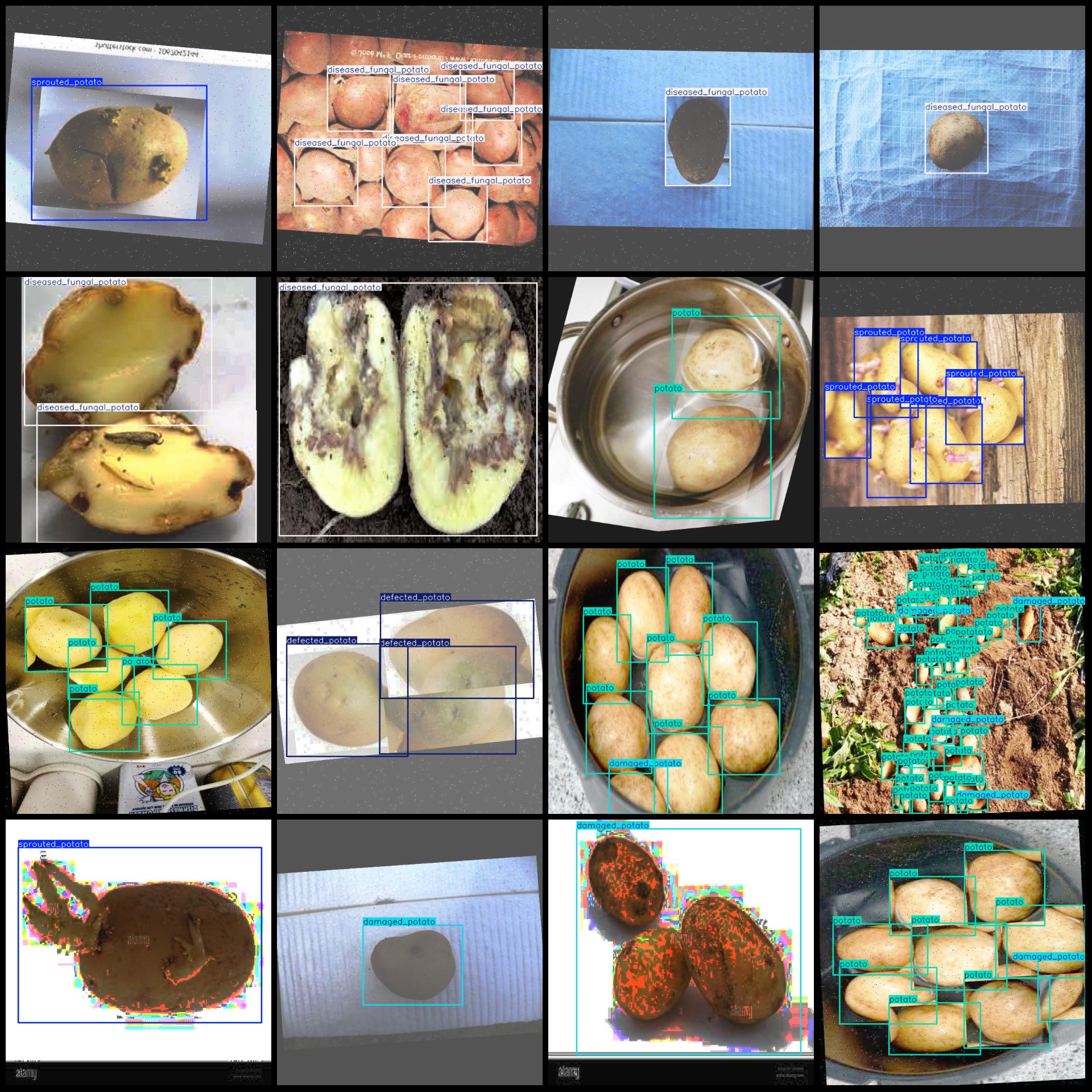 标注类别名称(注意yolo格式类别顺序不和这个对应,而以labels文件夹classes.txt为准):["damaged_potato","defected_potato","diseased_fungal_potato","potato","sprouted_potato"]