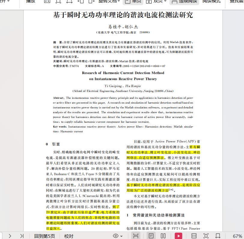 瞬时无功功率理论最早是由赤木泰文于1983在日本提出的,该理论最初是定义瞬时实功率p和瞬时虚功率q的,但随着其他学者不断深入地研究,在此基础上又提出了瞬时有功电流ip和瞬时无功电流iq的概念,进而形成了谐波检测法。