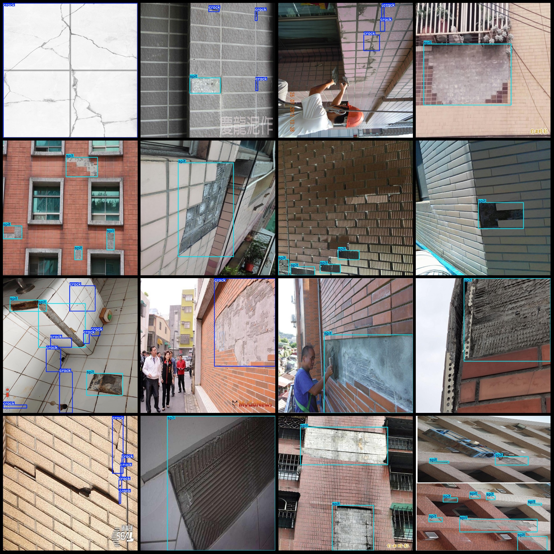 标注类别名称(注意yolo格式类别顺序不和这个对应,而以labels文件夹classes.txt为准):["crack","spit"]