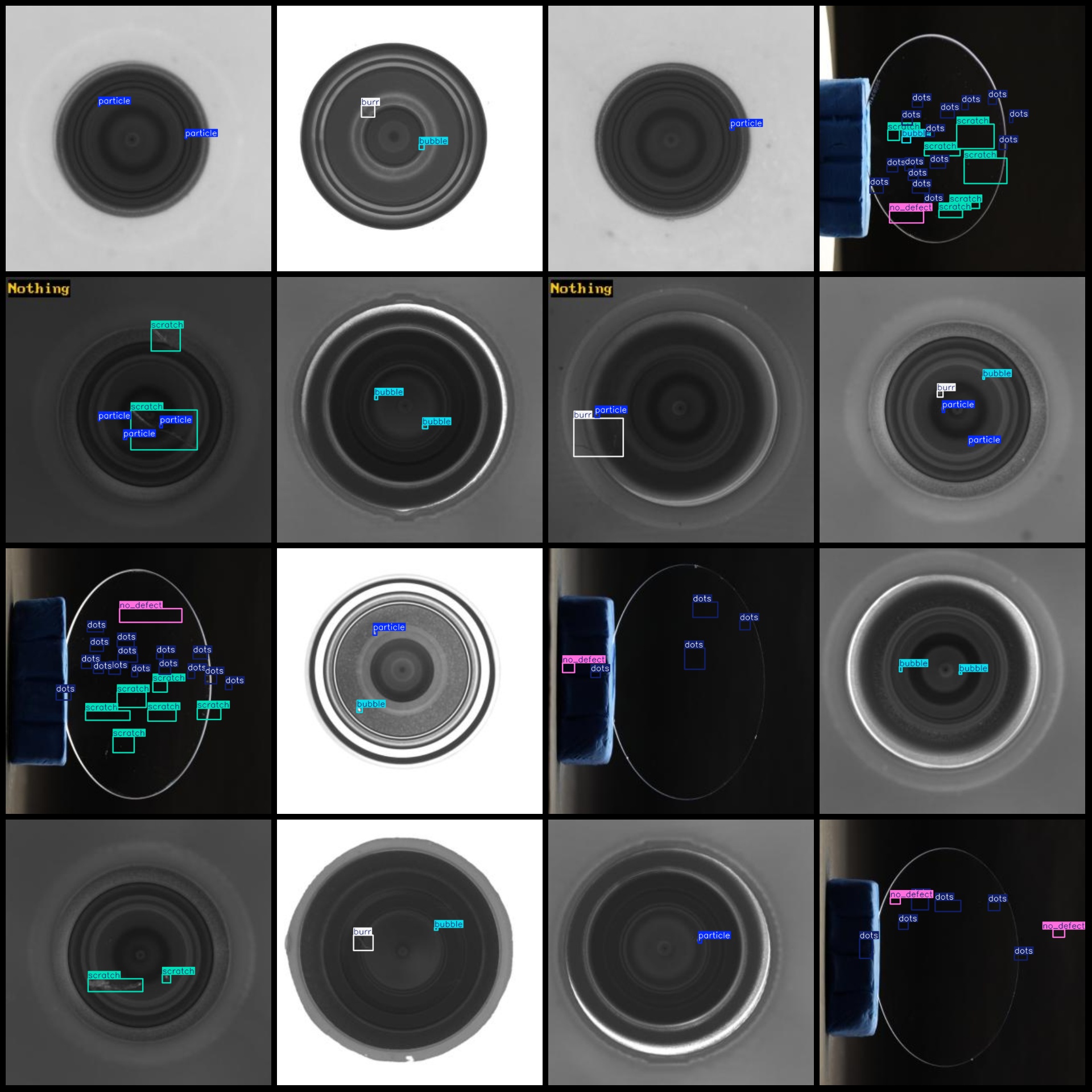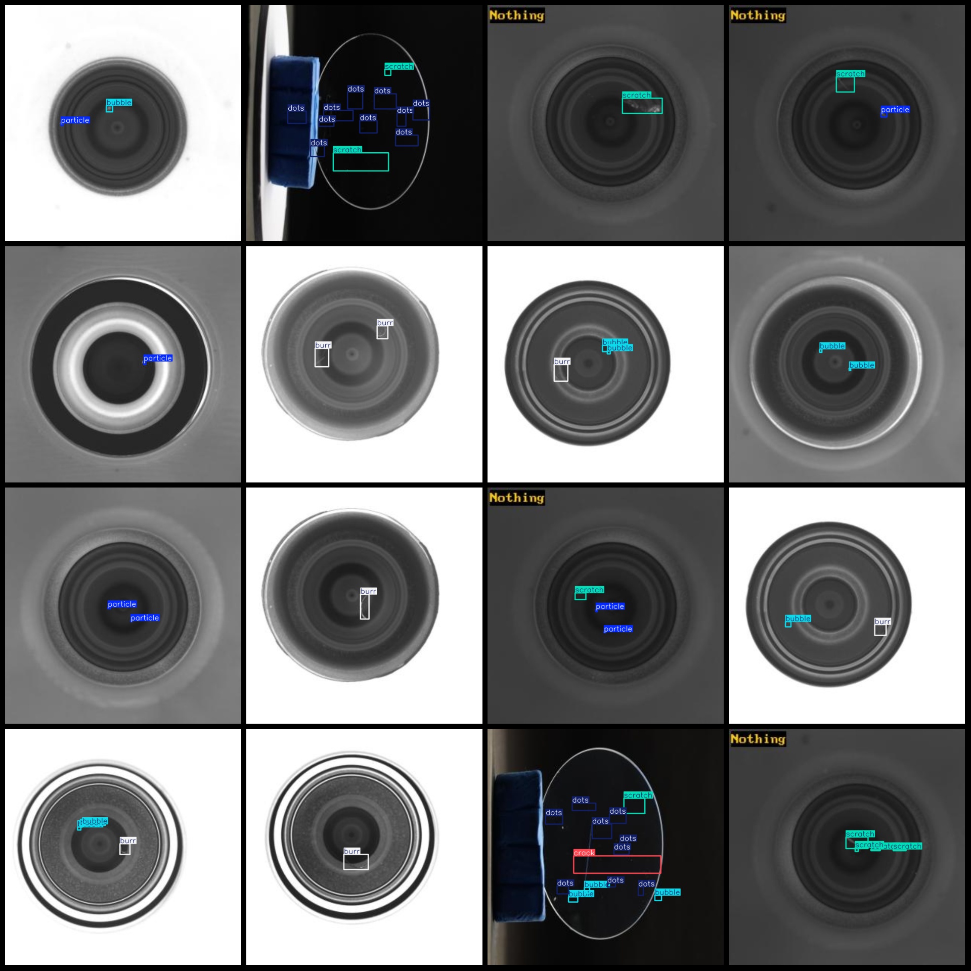 标注类别名称(注意yolo格式类别顺序不和这个对应,而以labels文件夹classes.txt为准):["bubble","burr","crack","deep_scratch","dots","no_defect","other_defect","particle","scratch"]