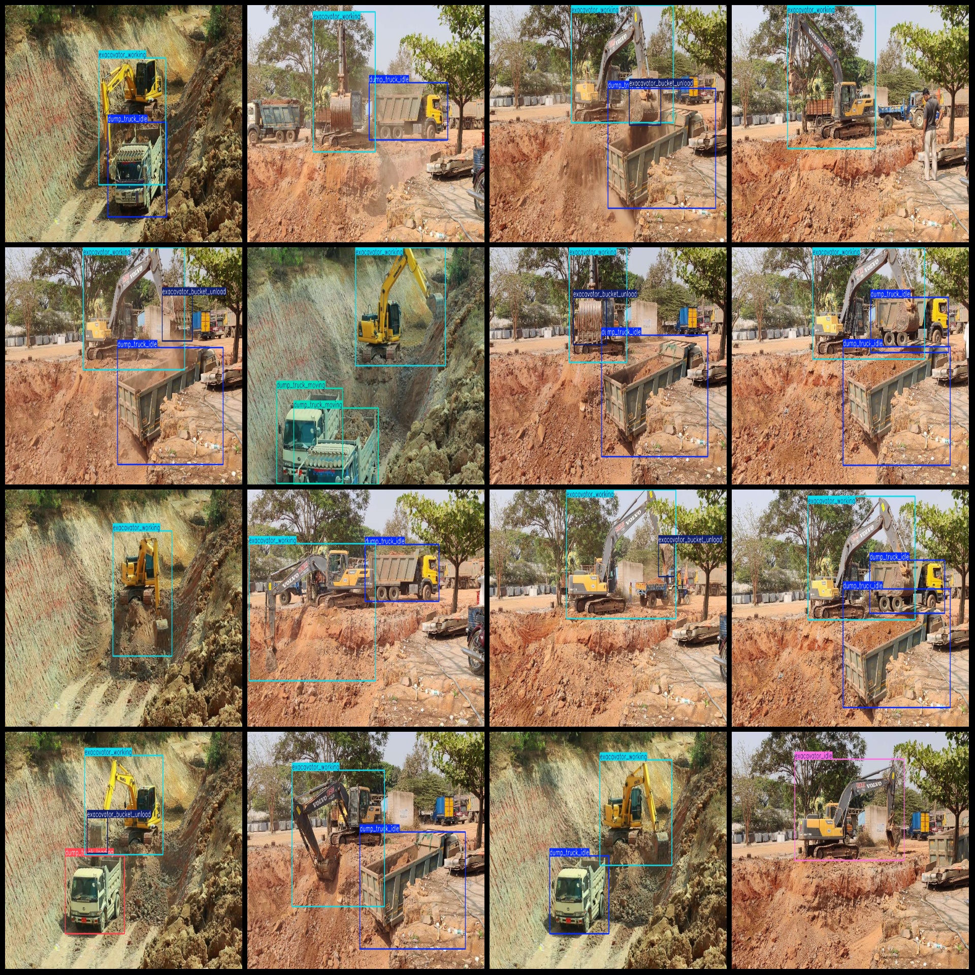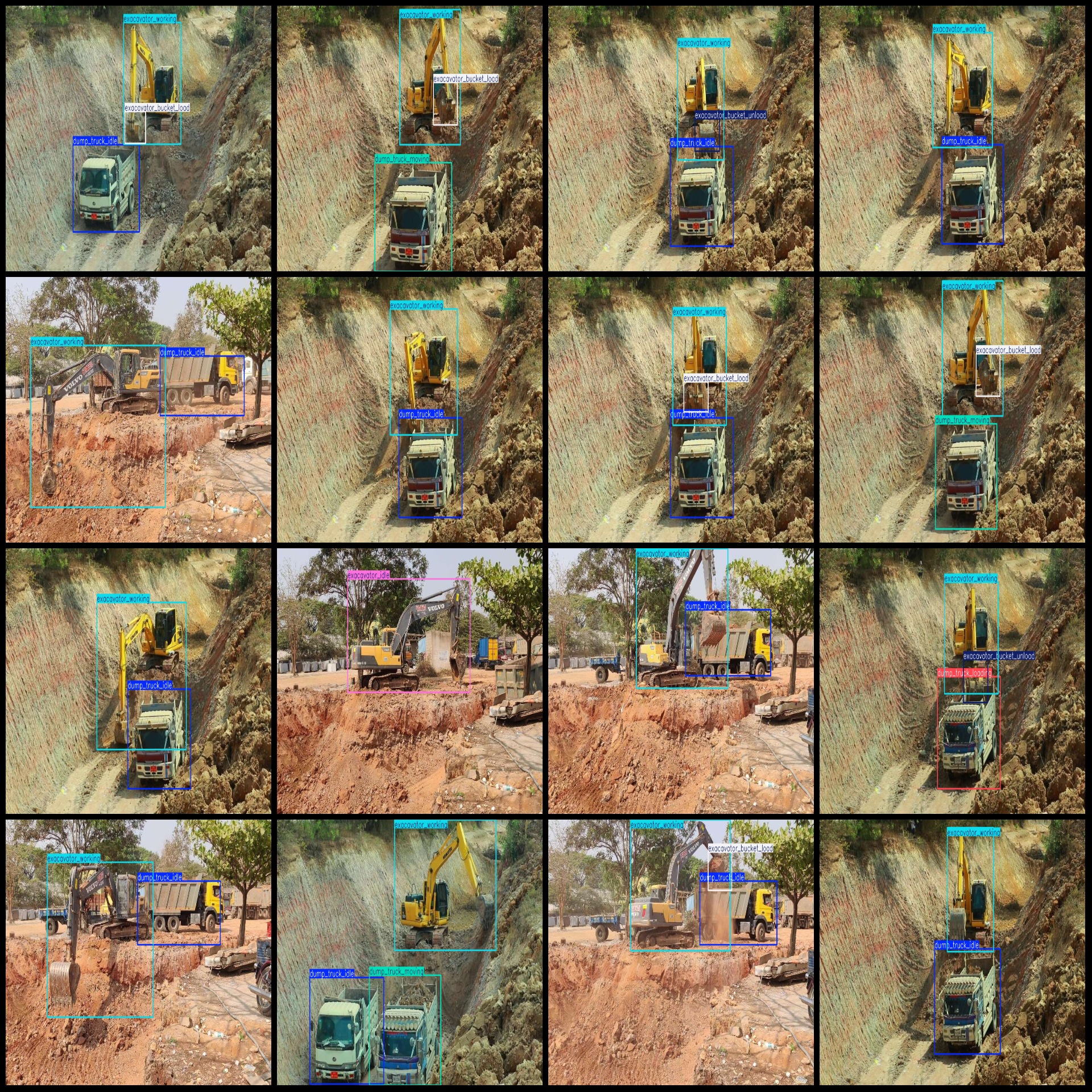 标注类别名称(注意yolo格式类别顺序不和这个对应,而以labels文件夹classes.txt为准):["dump_truck_idle","dump_truck_loading","dump_truck_moving","exacavator_bucket_load","exacavator_bucket_unload","exacavator_idle","exacavator_working"]