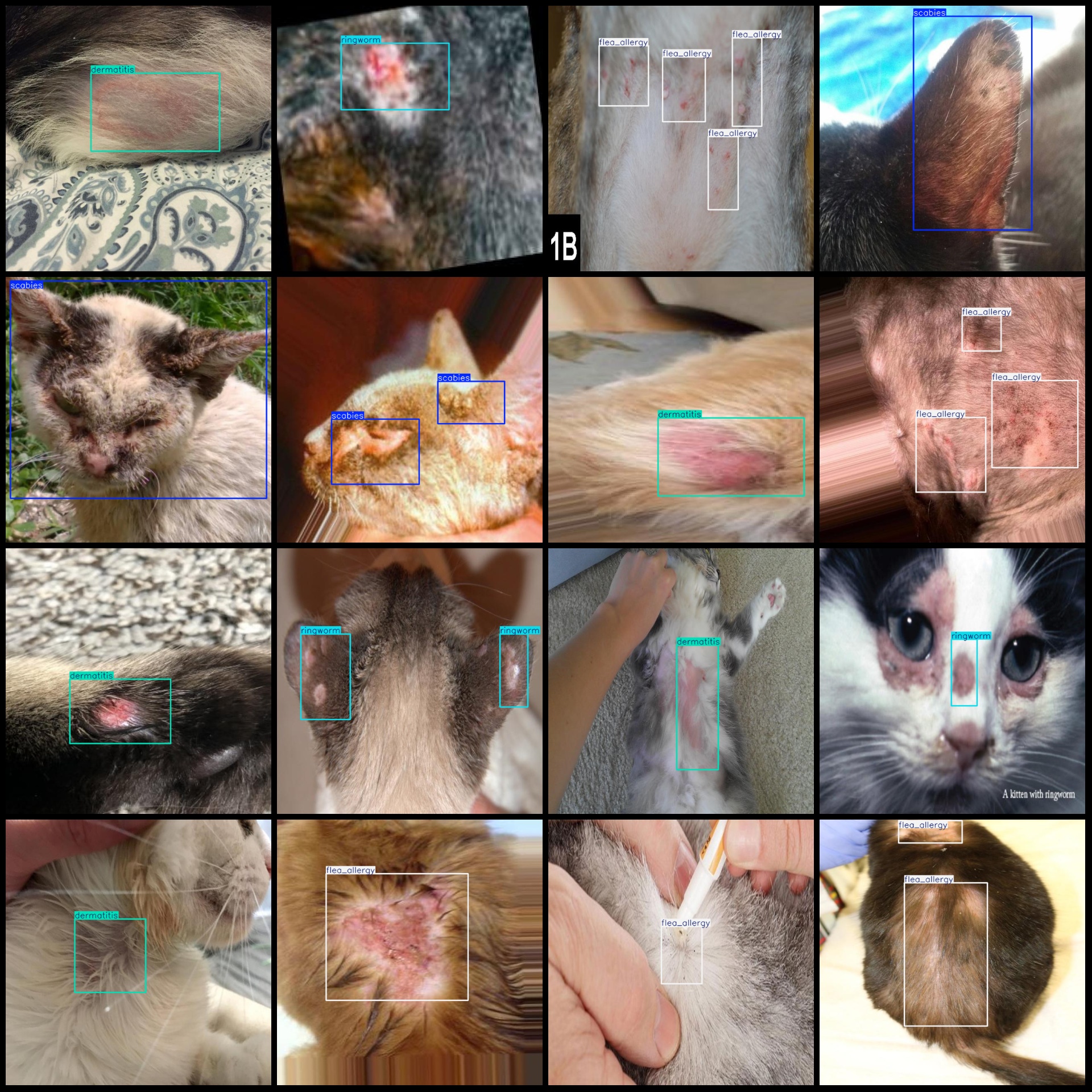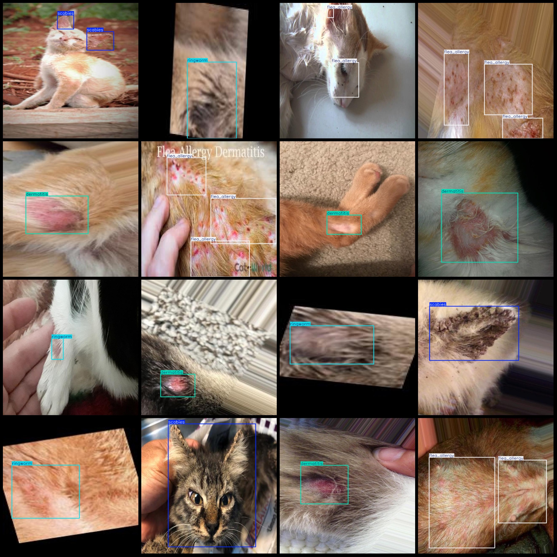 标注类别名称(注意yolo格式类别顺序不和这个对应,而以labels文件夹classes.txt为准):["dermatitis","flea_allergy","ringworm","scabies"]
