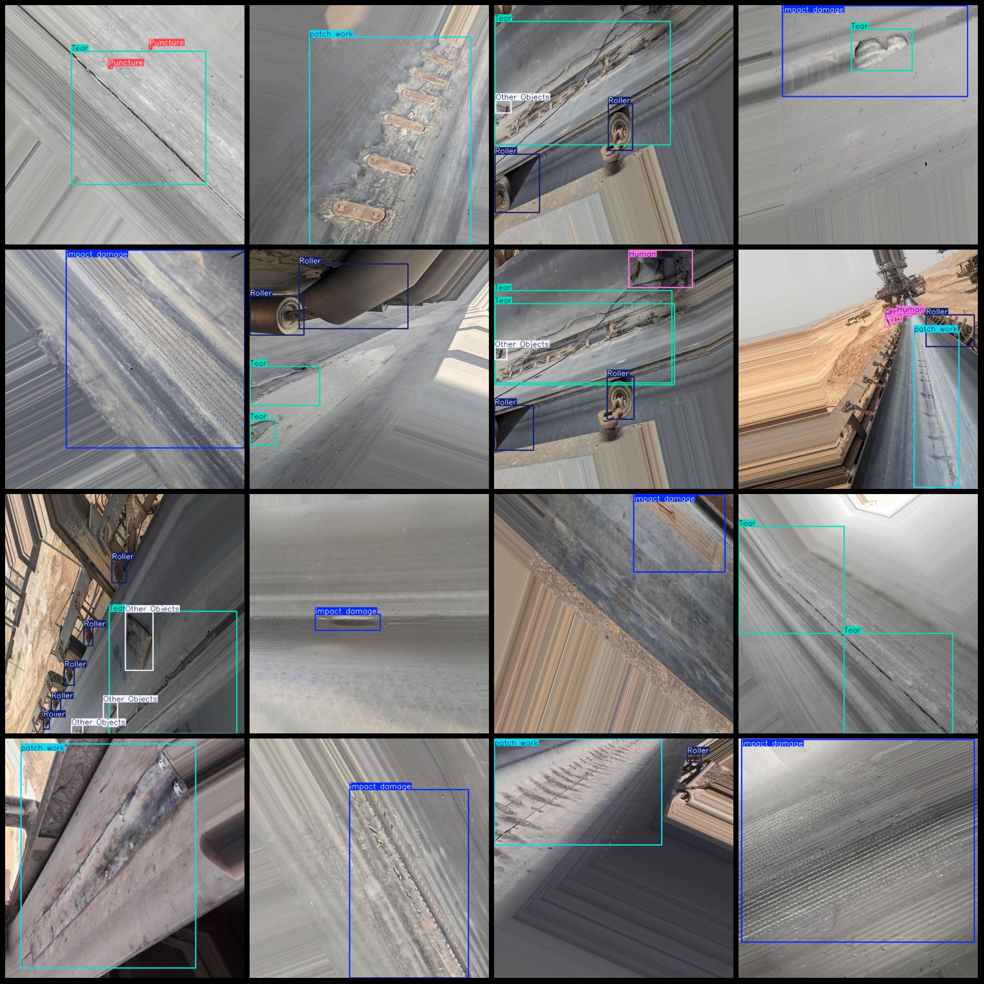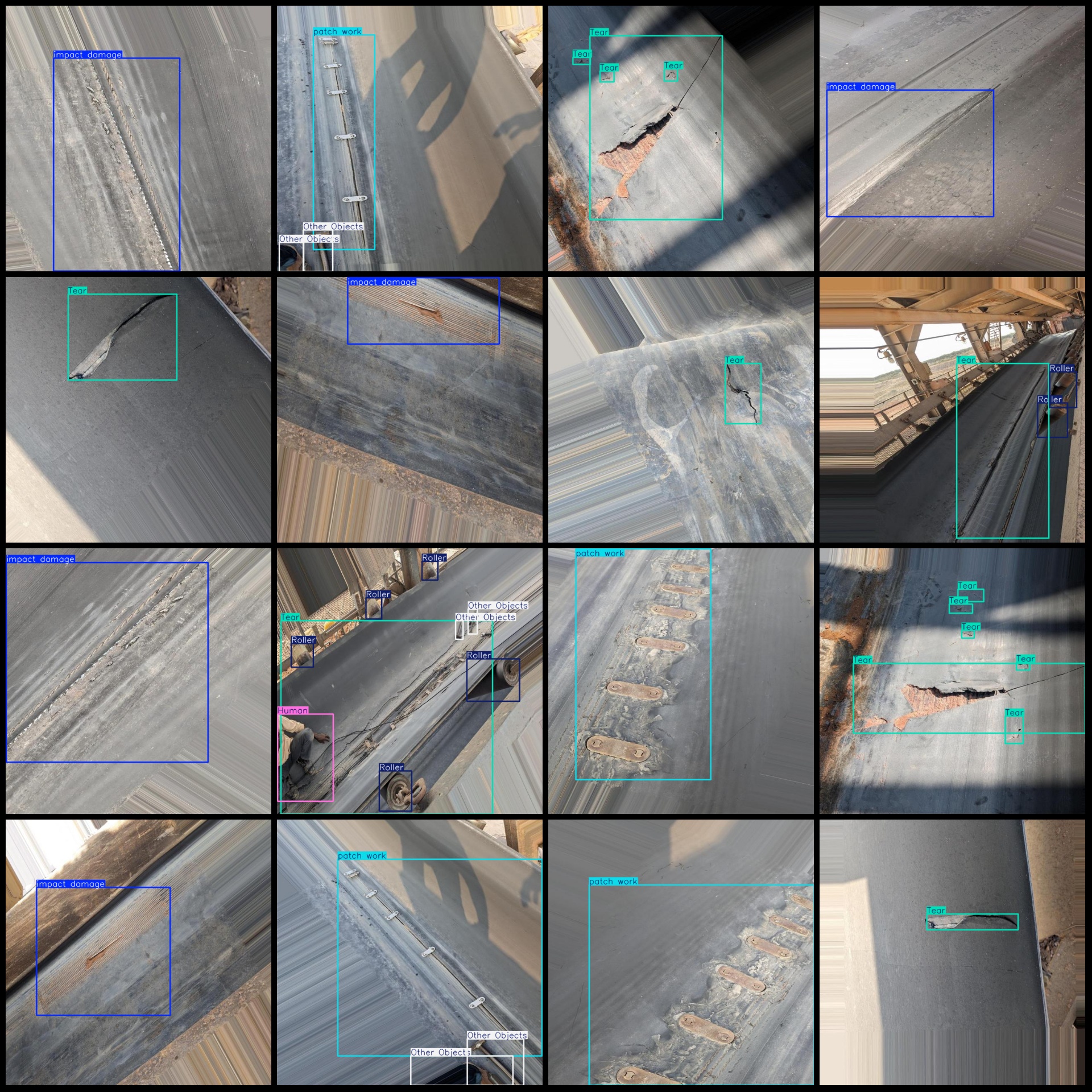 标注类别名称(注意yolo格式类别顺序不和这个对应,而以labels文件夹classes.txt为准):["Hole","Human","Other Objects","Puncture","Roller","Tear","impact damage","patch work"]