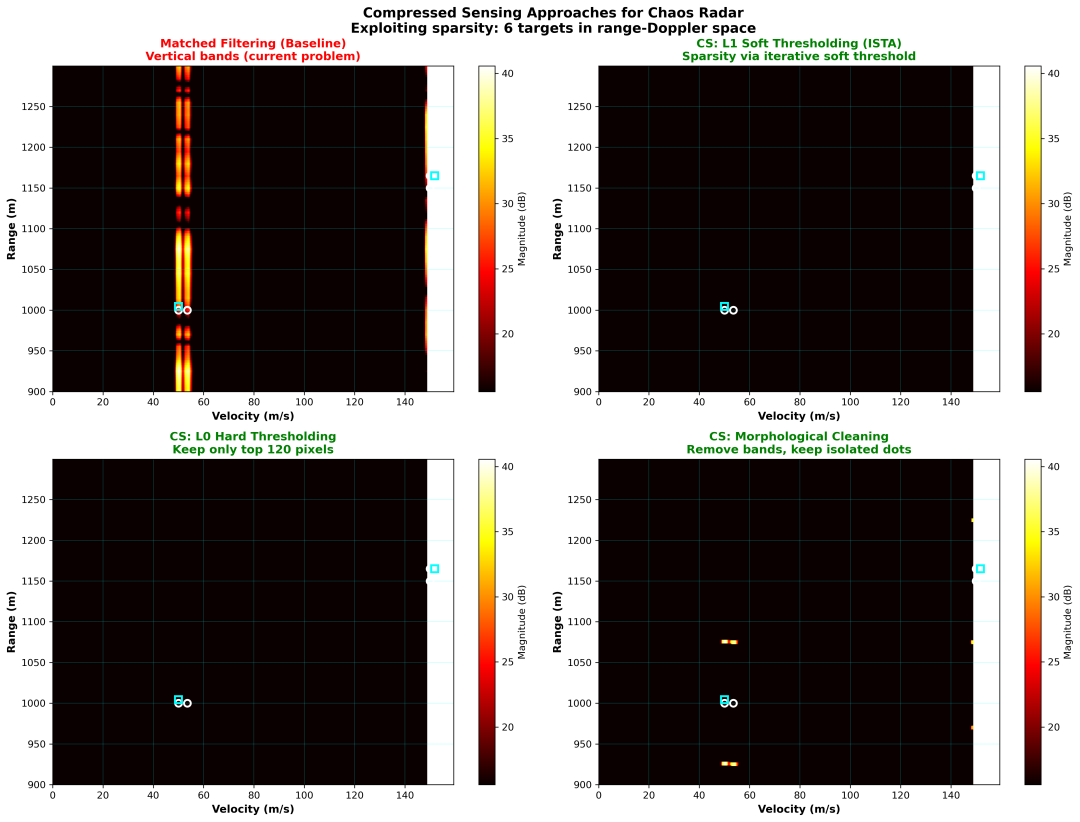 - CLEAN 算法则利用混沌波形的低旁瓣特性,通过迭代去除了剩余的旁瓣干扰,进一步挖掘了波形的潜在动态范围潜力。