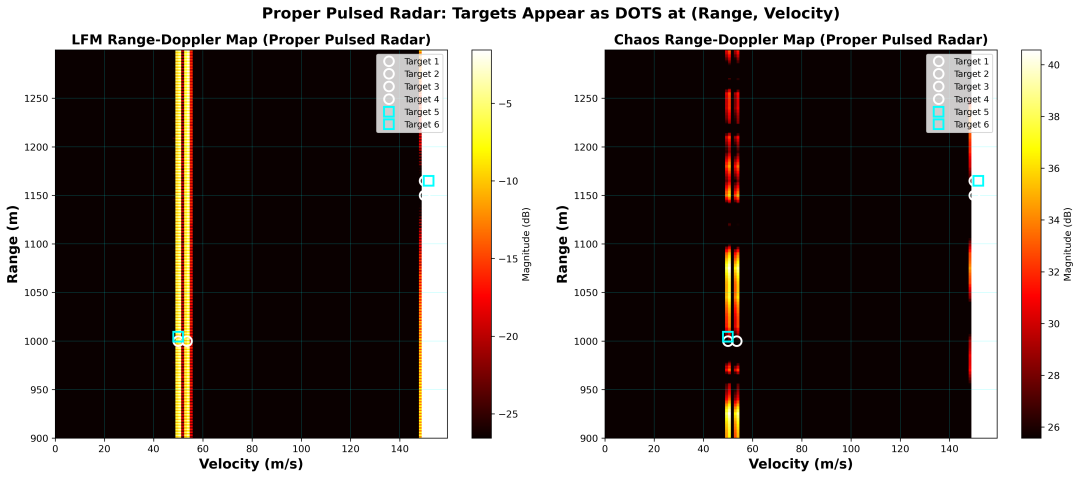 - 快速目标 T3, T4 成功检测:消除了距离-多普勒耦合。