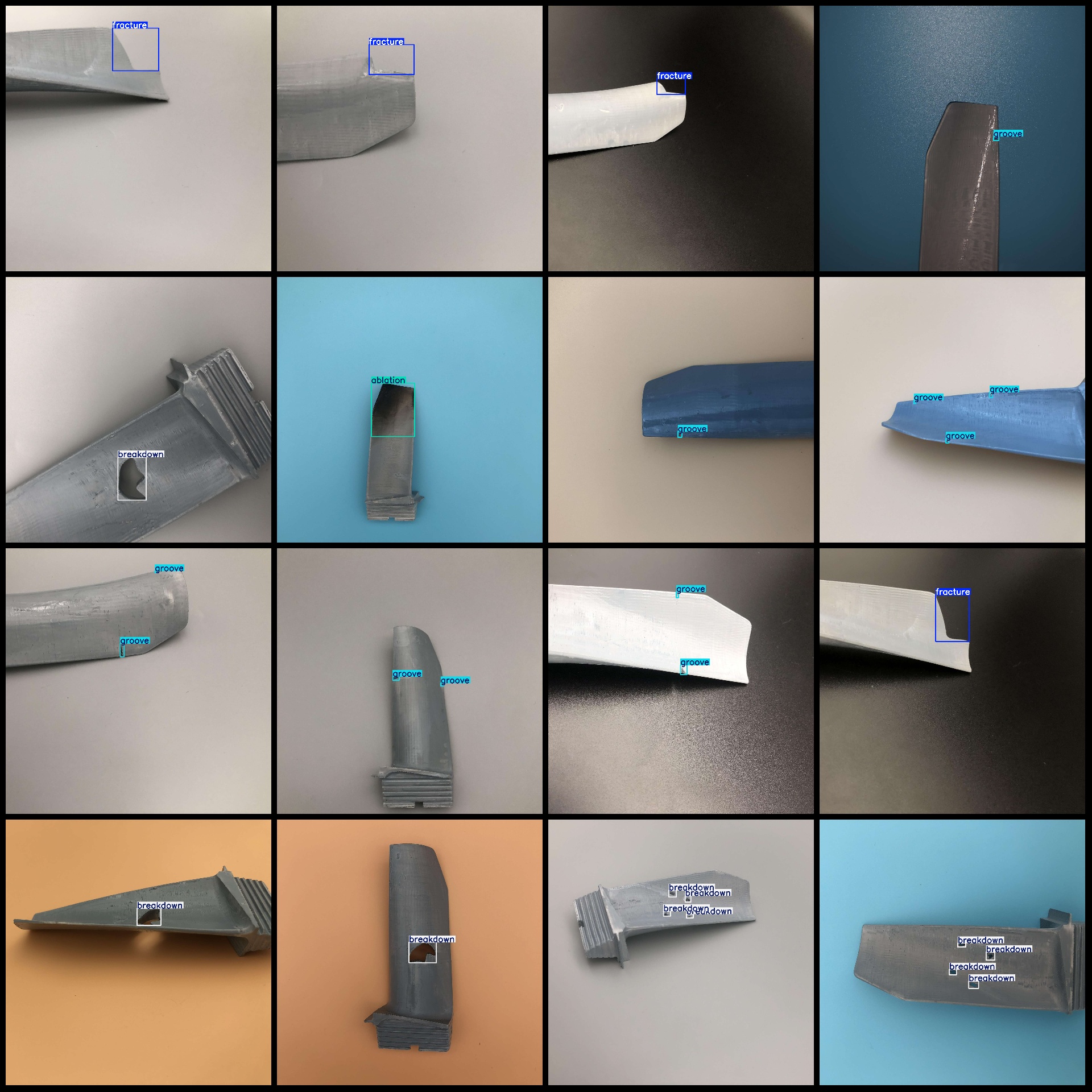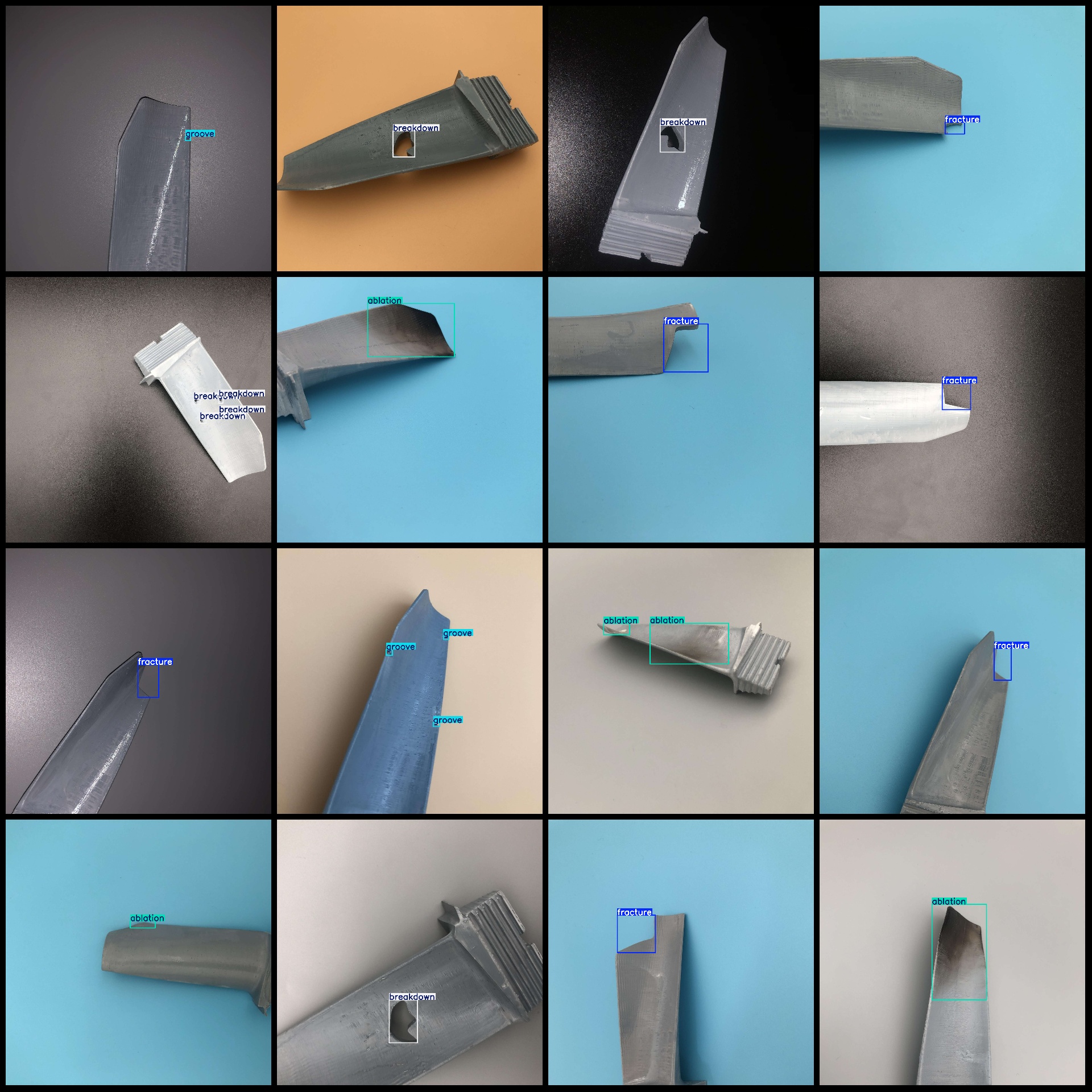 标注类别名称(注意yolo格式类别顺序不和这个对应,而以labels文件夹classes.txt为准):["ablation","breakdown","fracture","groove"]