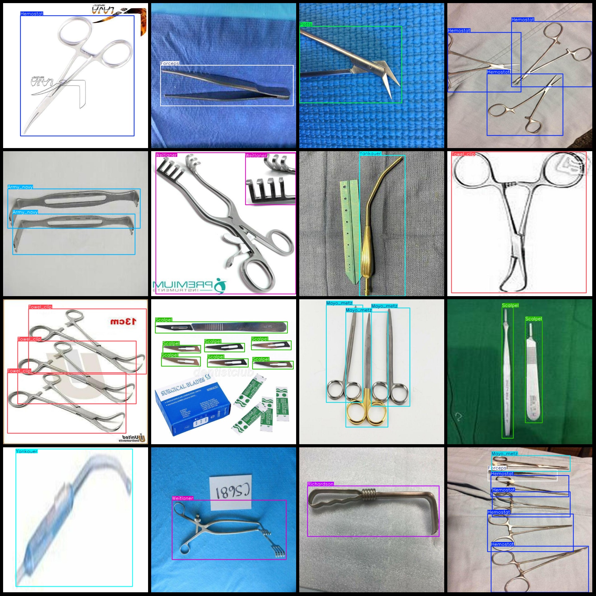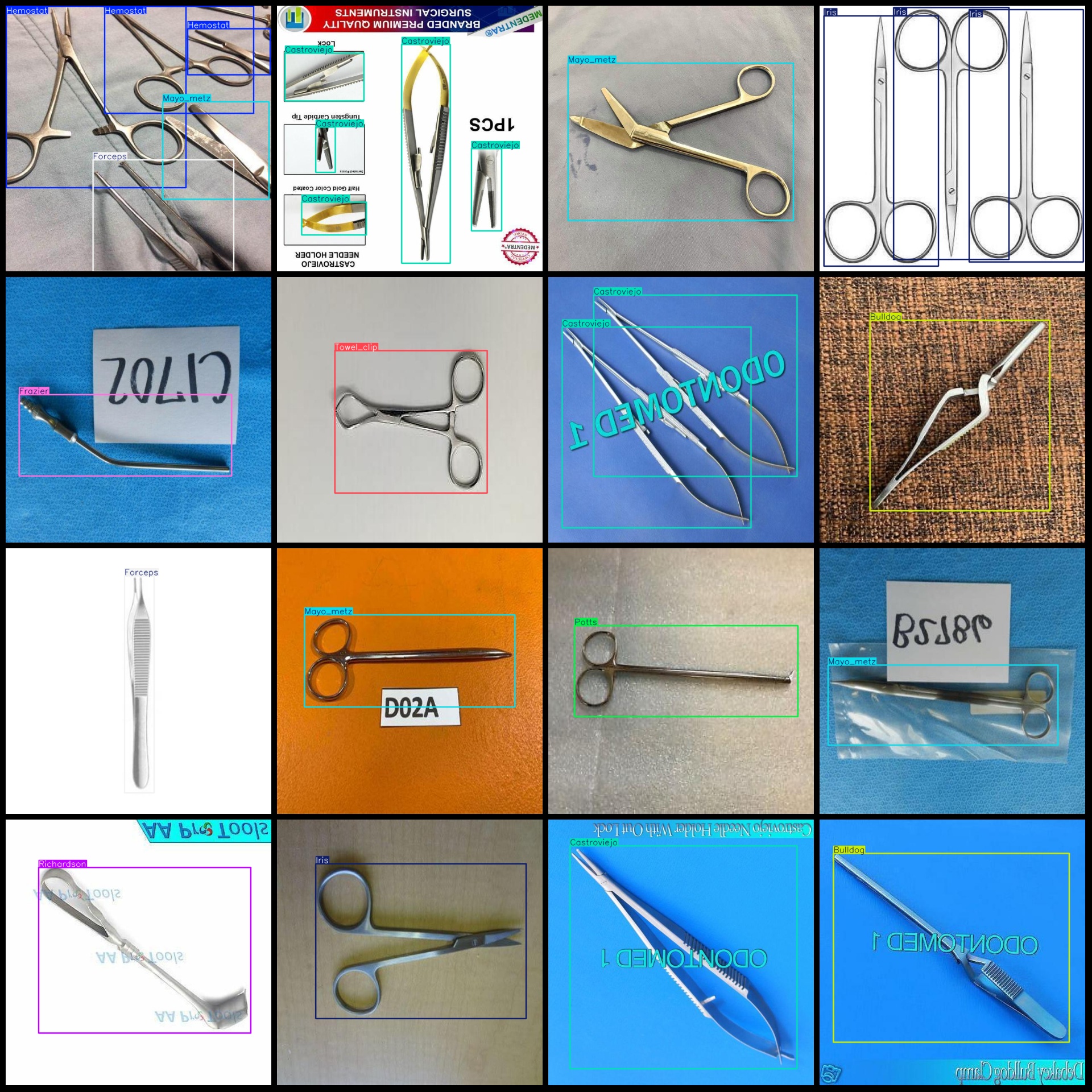 标注类别名称(注意yolo格式类别顺序不和这个对应,而以labels文件夹classes.txt为准):["Army_navy","Bulldog","Castroviejo","Forceps","Frazier","Hemostat","Iris","Mayo_metz","Needle","Potts","Richardson","Scalpel","Towel_clip","Weitlaner","Yankauer"]