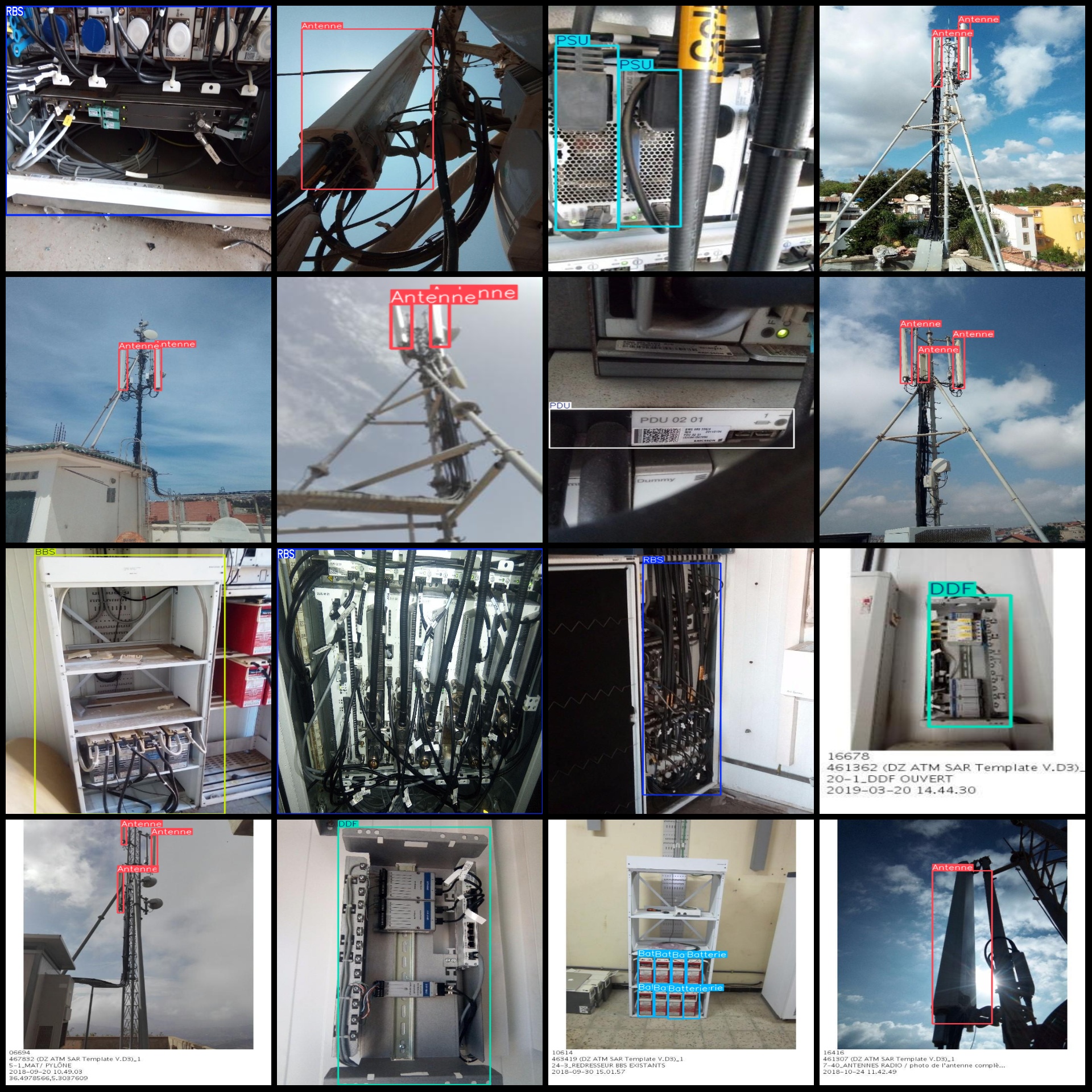 标注类别名称(注意yolo格式类别顺序不和这个对应,而以labels文件夹classes.txt为准):["Antenne","BBS","BFU","Batterie","DDF","PCF","PCU AC","PCU DC","PDU","PSU","RBS"]
