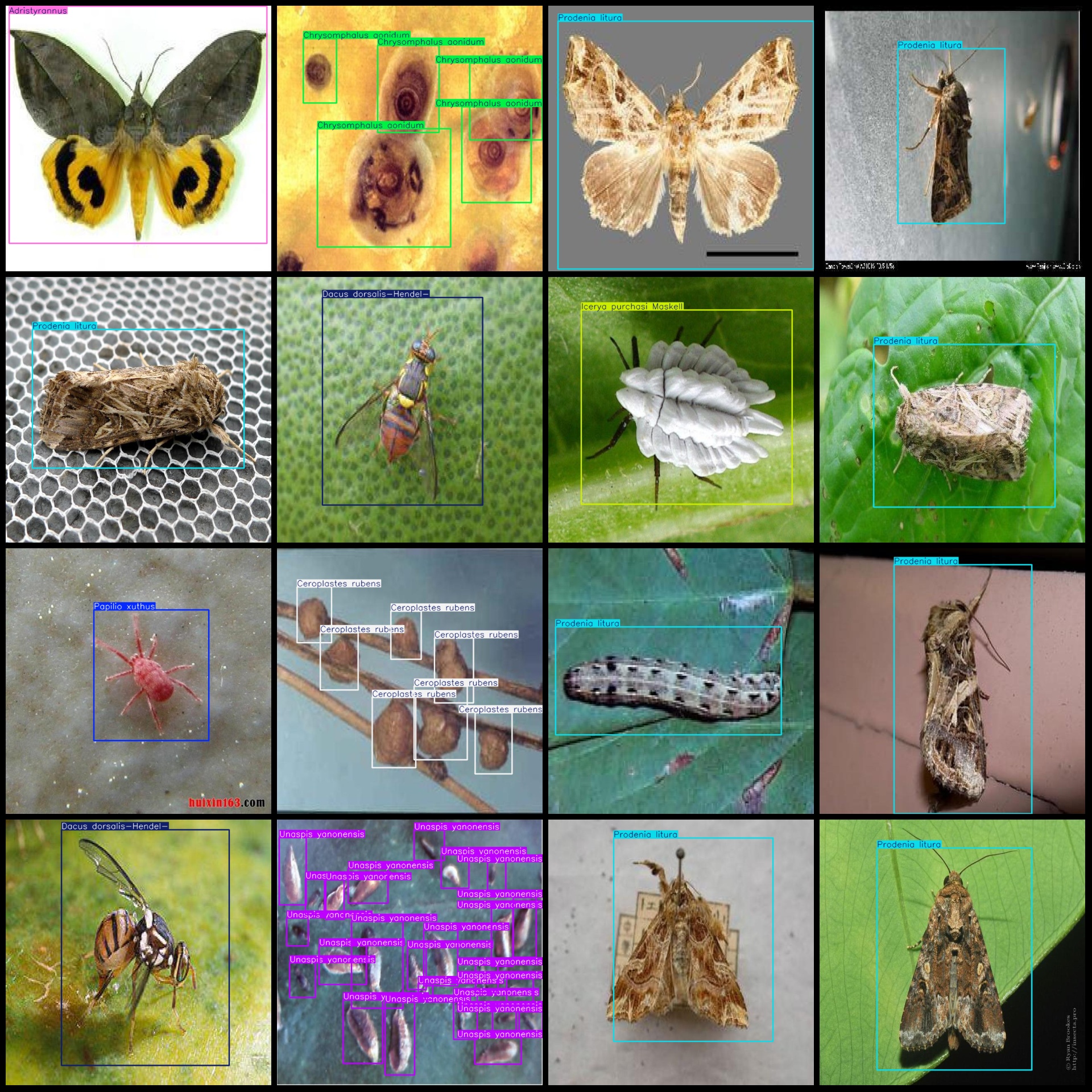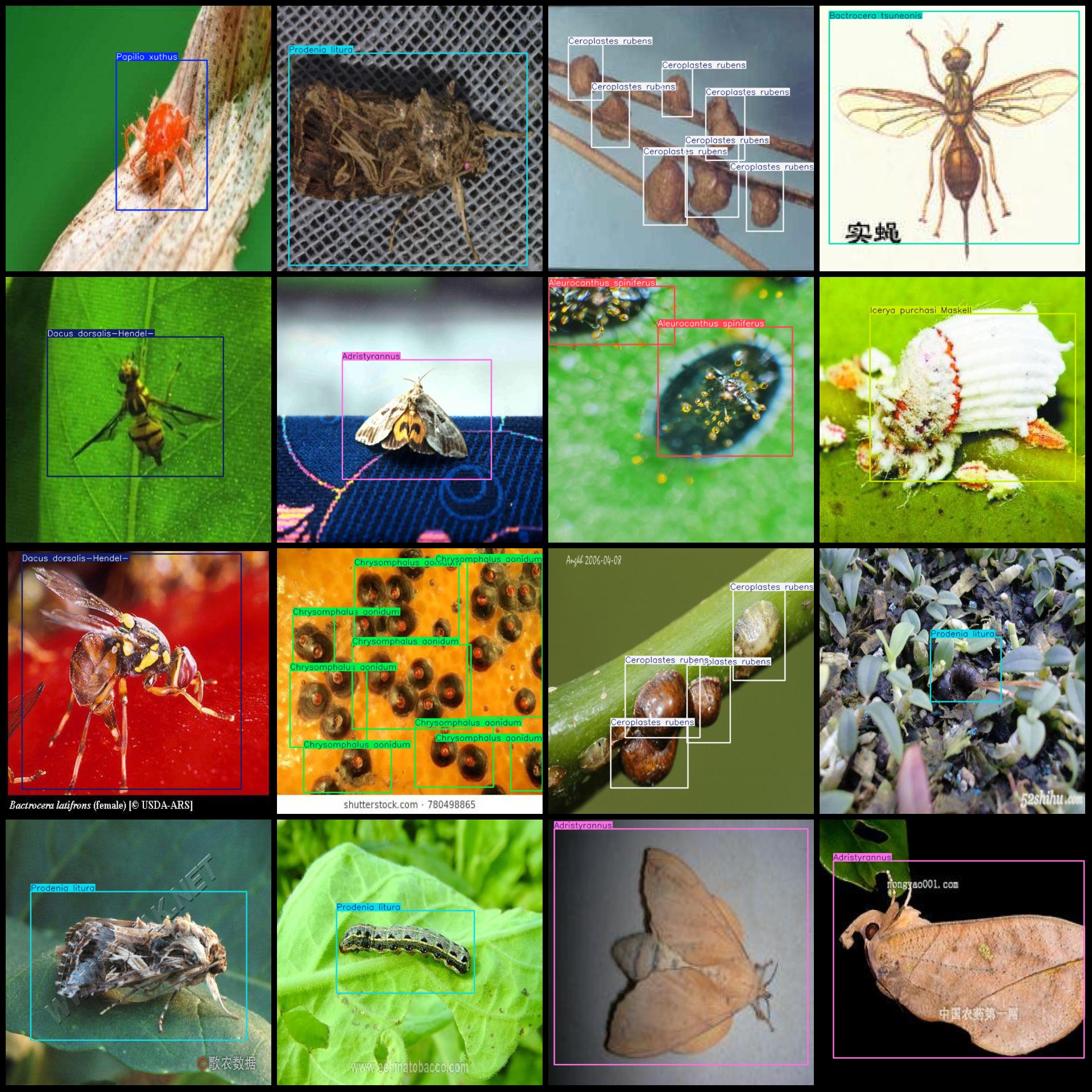 标注类别名称(注意yolo格式类别顺序不和这个对应,而以labels文件夹classes.txt为准):["Adristyrannus","Aleurocanthus spiniferus","Aphis citricola Vander Goot","Bactrocera tsuneonis","Ceroplastes rubens","Chrysomphalus aonidum","Dacus dorsalis-Hendel-","Icerya purchasi Maskell","Nipaecoccus vastalor","Panonchus citri McGregor","Papilio xuthus","Phyllocnistis citrella Stainton","Prodenia litura","Tetradacus c Bactrocera minax","Toxoptera aurantii","Toxoptera citricidus","Unaspis yanonensis"]
