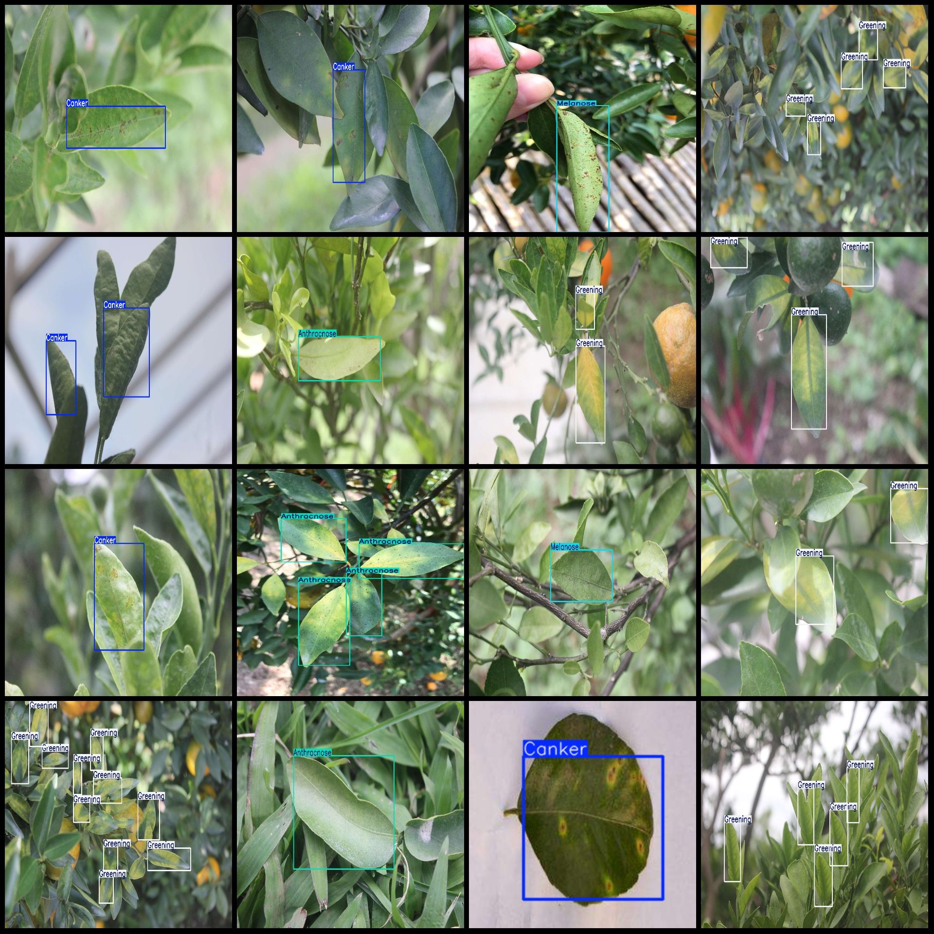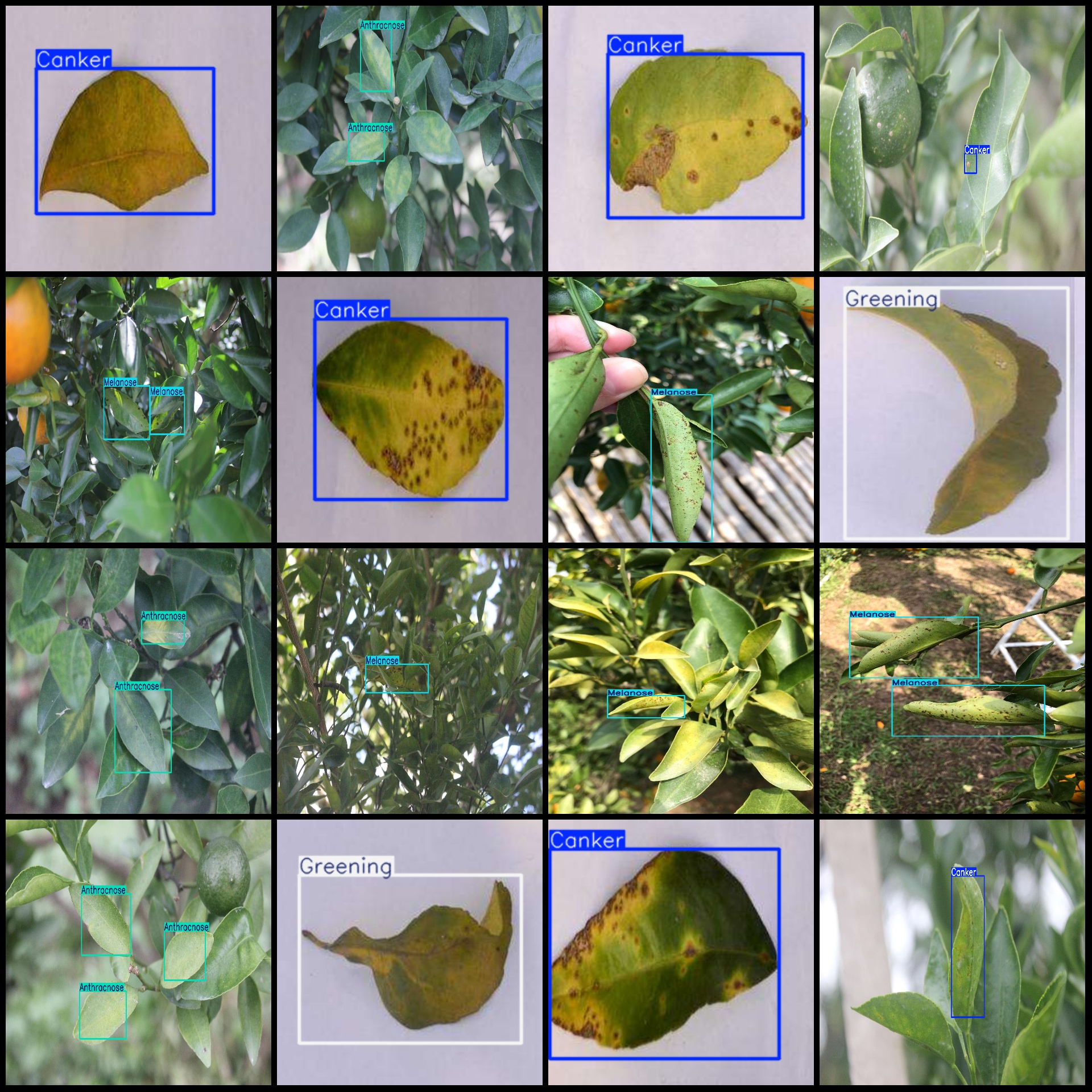 标注类别名称(注意yolo格式类别顺序不和这个对应,而以labels文件夹classes.txt为准):["Anthracnose","Canker","Greening","Melanose"]