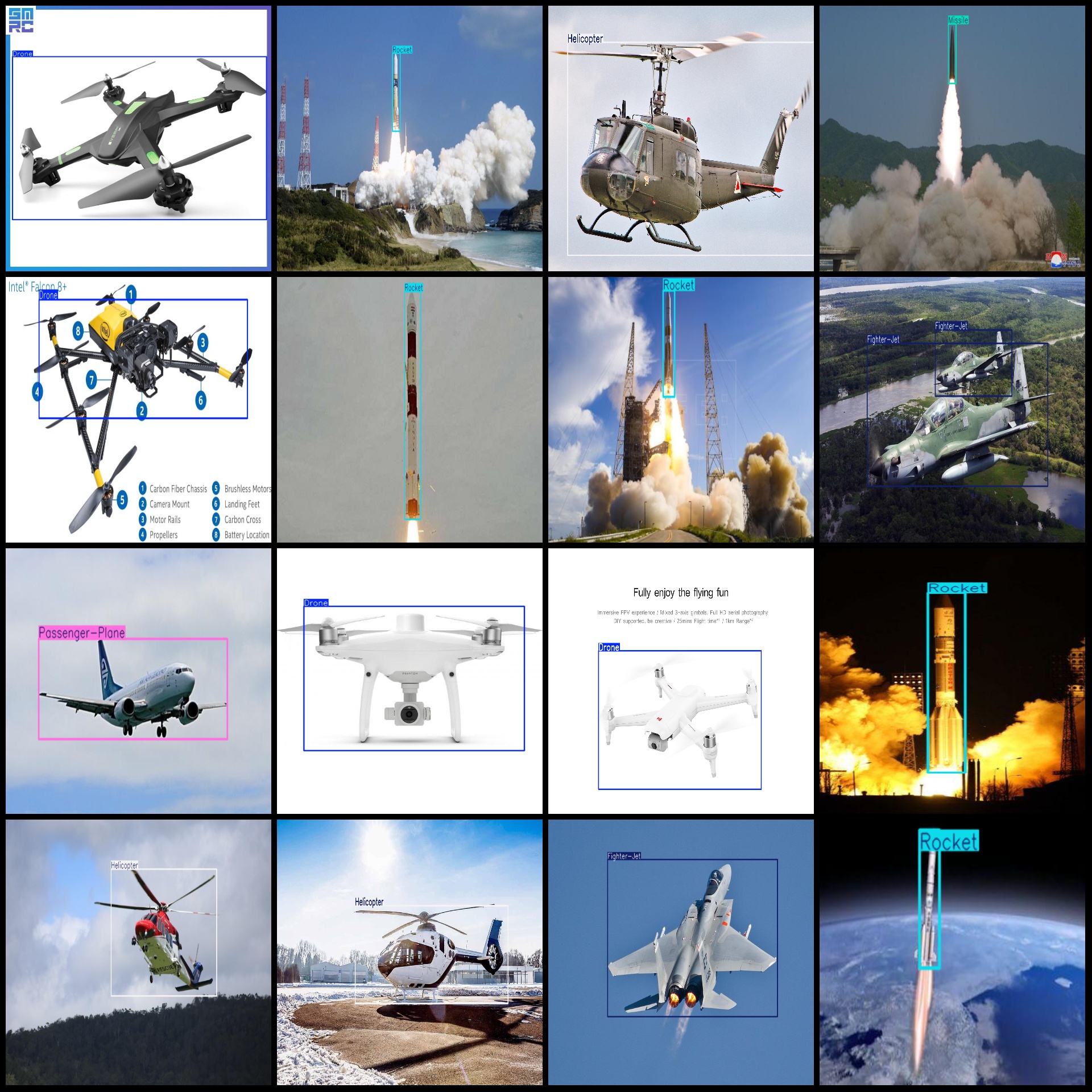 标注类别名称(注意yolo格式类别顺序不和这个对应,而以labels文件夹classes.txt为准):["Drone","Fighter-Jet","Helicopter","Missile","Passenger-Plane","Rocket"]