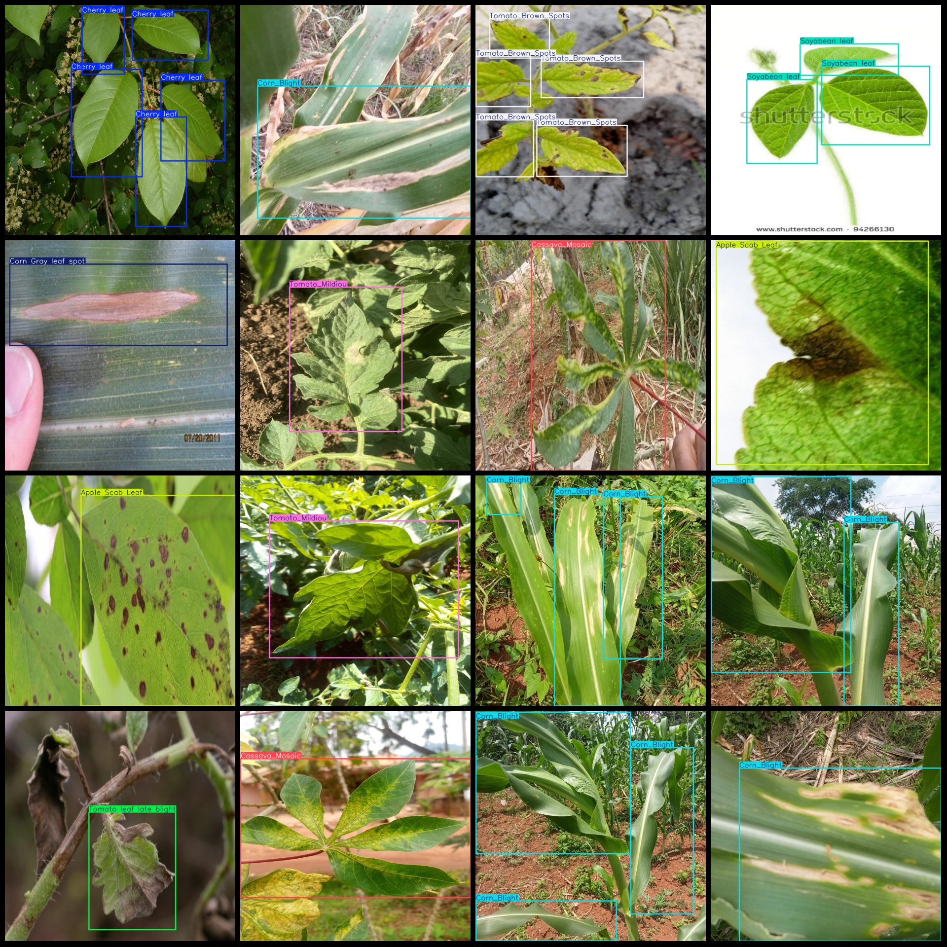 标注类别名称(注意yolo格式类别顺序不和这个对应,而以labels文件夹classes.txt为准):["Anthracnose Fruit Rot","Apple Scab Leaf","Apple leaf","Apple rust leaf","Bell_pepper leaf","Bell_pepper leaf spot","Blossom Blight","Blueberry leaf","Cassava_Bacterial_Disease","Cassava_Brown_Leaf_Spot","Cassava_Healthy","Cassava_Mosaic","Cassava_Root_Rot","Cherry leaf","Chili___Anthracnose_fruit","Chili___Bacterial_leaf_spot","Chili___Healthy_fruit","Corn Gray leaf spot","Corn Healthy","Corn Smut","Corn Streak","Corn leaf blight","Corn rust leaf","Corn_Blight","Corn_Brown_Spots","Corn_Cercosporiose","Corn_Charcoal","Corn_Chlorotic_Leaf_Spot","Corn_Healthy","Corn_Insects_Damages","Corn_Mildiou","Corn_Purple_Discoloration","Corn_Rust","Corn_Smut","Corn_Streak","Corn_Stripe","Corn_Violet_Decoloration","Corn_Yellow_Spots","Corn_Yellowing","Eggplant___Colorado_potato_beetle","Eggplant___Fruit_rot","Eggplant___Healthy_fruit","Eggplant___Healthy_leaf","Gray Mold","Leaf Spot","Peach leaf","Potato leaf","Potato leaf early blight","Potato leaf late blight","Potato___Alternaria_solani_leaf","Potato___Common_scab_fruit","Potato___Healthy_fruit","Potato___Healthy_leaf","Potato___Phytopthora_infestans_leaf","Potato___Virus_leaf","Powdery Mildew Fruit","Powdery Mildew Leaf","Raspberry leaf","Soyabean leaf","Squash Powdery mildew leaf","Strawberry leaf","Tomato Early blight leaf","Tomato Septoria leaf spot","Tomato leaf","Tomato leaf bacterial spot","Tomato leaf late blight","Tomato leaf mosaic virus","Tomato leaf yellow virus","Tomato mold leaf","Tomato two spotted spider mites leaf","Tomato_Brown_Spots","Tomato_Leaf_Curling","Tomato_Mildiou","Tomato_Mosaic","Tomato___Anthracnose_fruit","Tomato___Bacterial_spot_leaf","Tomato___Early_blight_leaf","Tomato___Healthy_fruit","Tomato___Healthy_leaf","Tomato___Late_blight_leaf","Tomato___Leaf_mold","Tomato_bacterial_wilt","Tomato_healthy","grape leaf","grape leaf black rot","spider mites"]