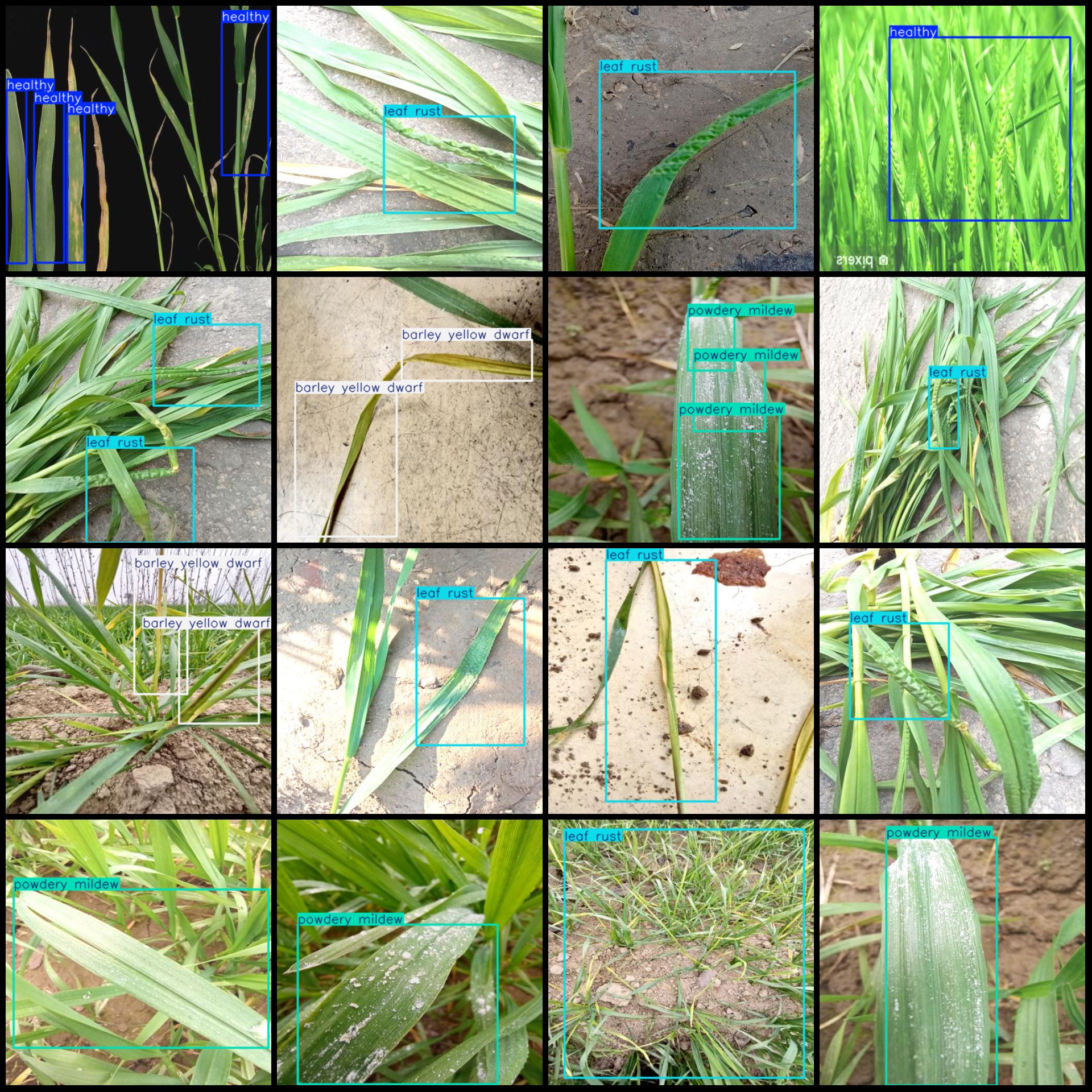 标注类别名称(注意yolo格式类别顺序不和这个对应,而以labels文件夹classes.txt为准):["barley yellow dwarf","healthy","leaf rust","powdery mildew"]