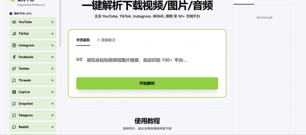 作品简介 📽️ 一键解析下载视频/图片/音频支持的平台:国内:抖音、快手、微博、小红书、B站等国外:YouTube、TikTok、Facebook、Instagram、Telegram等总计支持 100+ 平台,下载速度更快、更稳定! 创作时间: