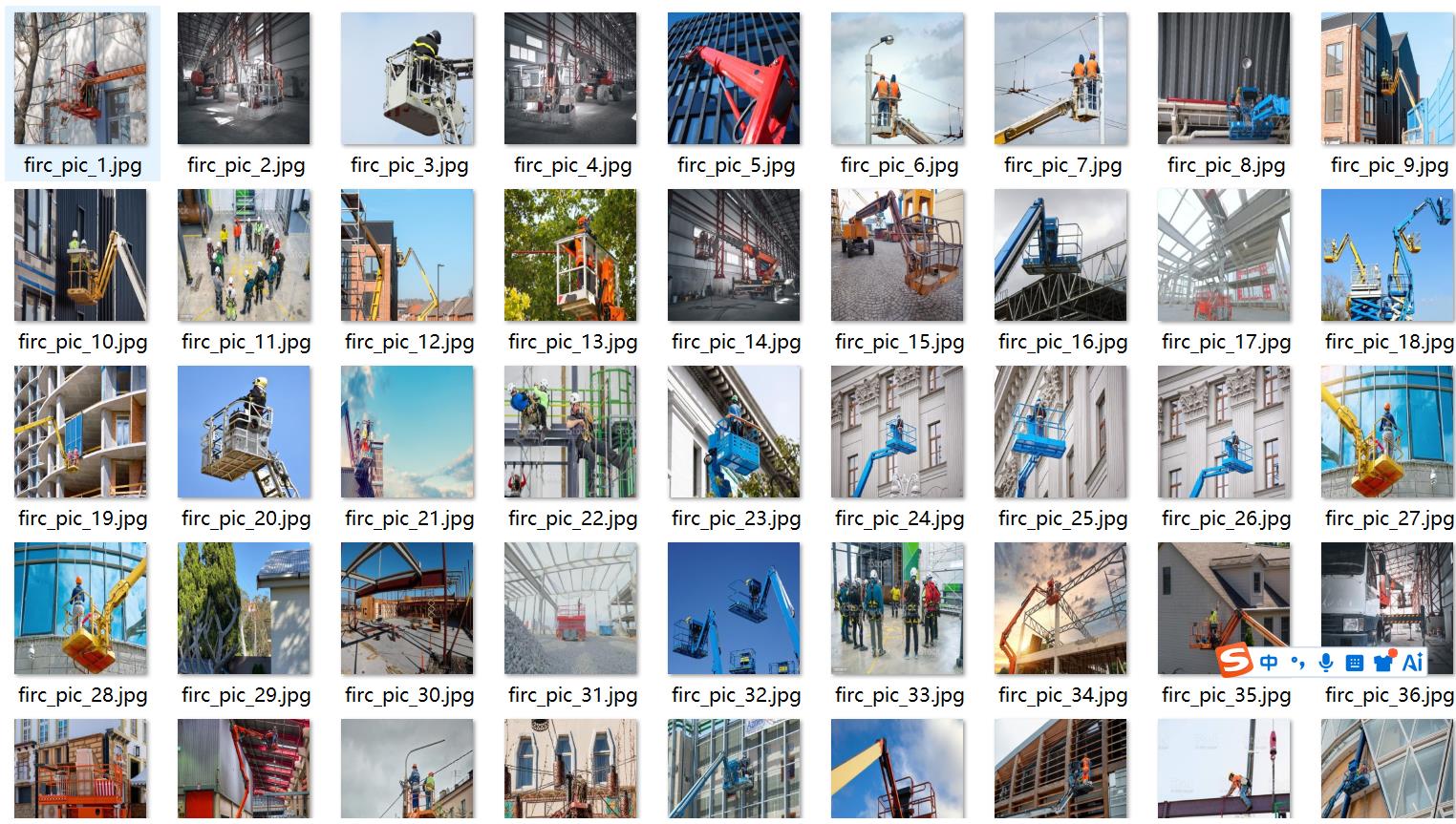 gaokongzuoyepingtai(高空作业平台)框数 = 2500,占有图片数 = 2017