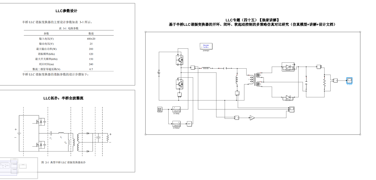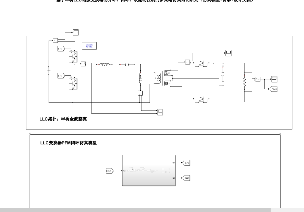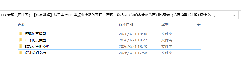 LLC专题(四十五)【独家讲解】基于半桥LLC谐振变换器的开环、闭环、软起动控制的多策略仿真对比研究(仿真模型+讲解+设计文档)