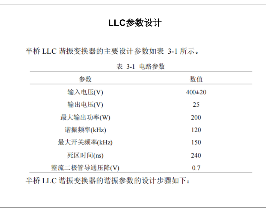 随着电力电子技术和功率半导体器件的飞速发展,开关变换器的工作频率不 断提高。谐振变换器采用软开关方式,相较 PWM 变换器采用的硬开关方式,能 有效地解决高工作频率下低转换效率的问题。 本文首先研究了半桥 LLC 谐振变换器的工作原理,详细分析了初级开关管 的 ZVS 及次级整流二极管的 ZCS 软开关过程。接着使用基波等效(FHA)的方 法简化 LLC 谐振电路,利用 Matlab 软件对其等效电路进行了仿真,分析了稳态 特性。随后给出了谐振槽谐振元件参数的设计步骤,并对参数进行了完整设计。 在此基础上,对半桥 LLC 谐振电路进行仿真建模分析,面对电压闭环系统出现 的浪涌电流问题,在电路启动时设置软启动方式,有效降低了浪涌电流。