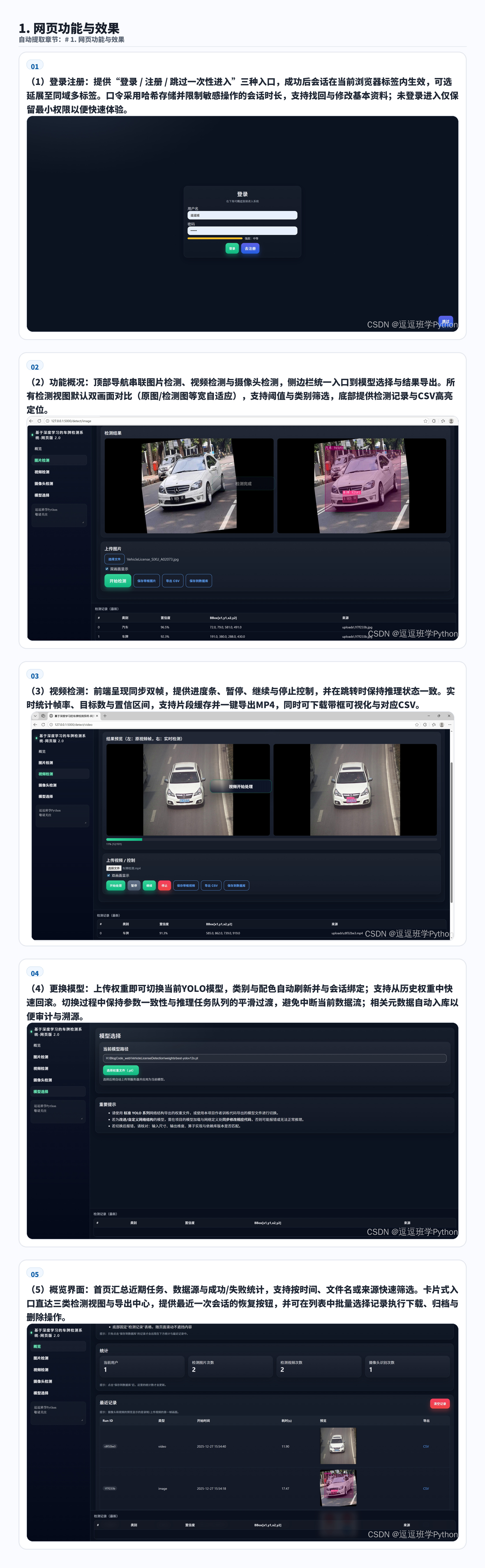输入方式:支持图片、视频、浏览器摄像头三种输入源,浏览器端实时显示检测框与置信度
