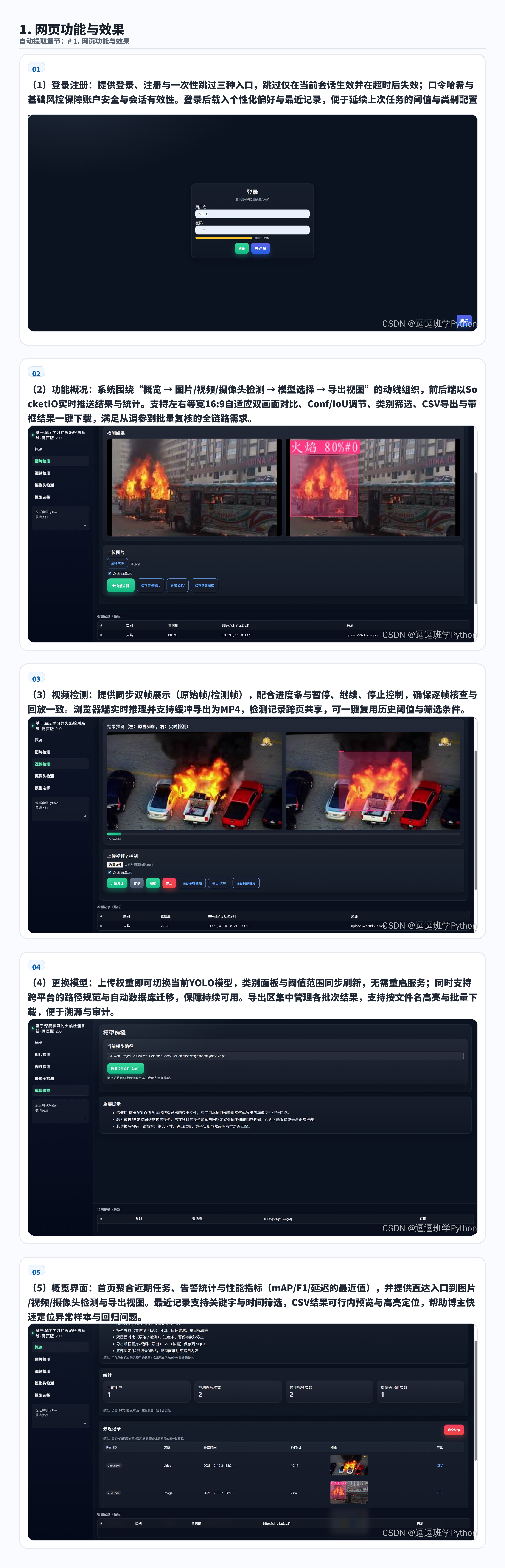 系统架构:采用 Flask + Flask-SocketIO 后端推理,配套 HTML / CSS / JS Web 界面,支持一键启动可视化演示