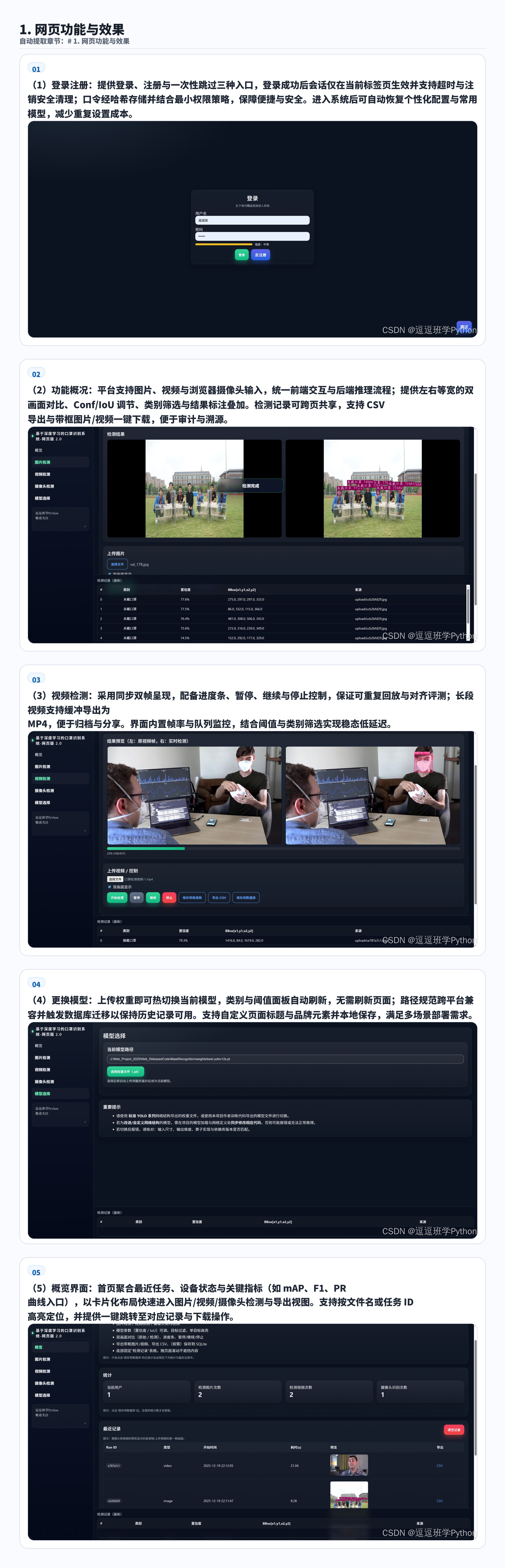 输入方式:支持图片、视频、浏览器摄像头三种输入源,浏览器端实时显示检测框与置信度