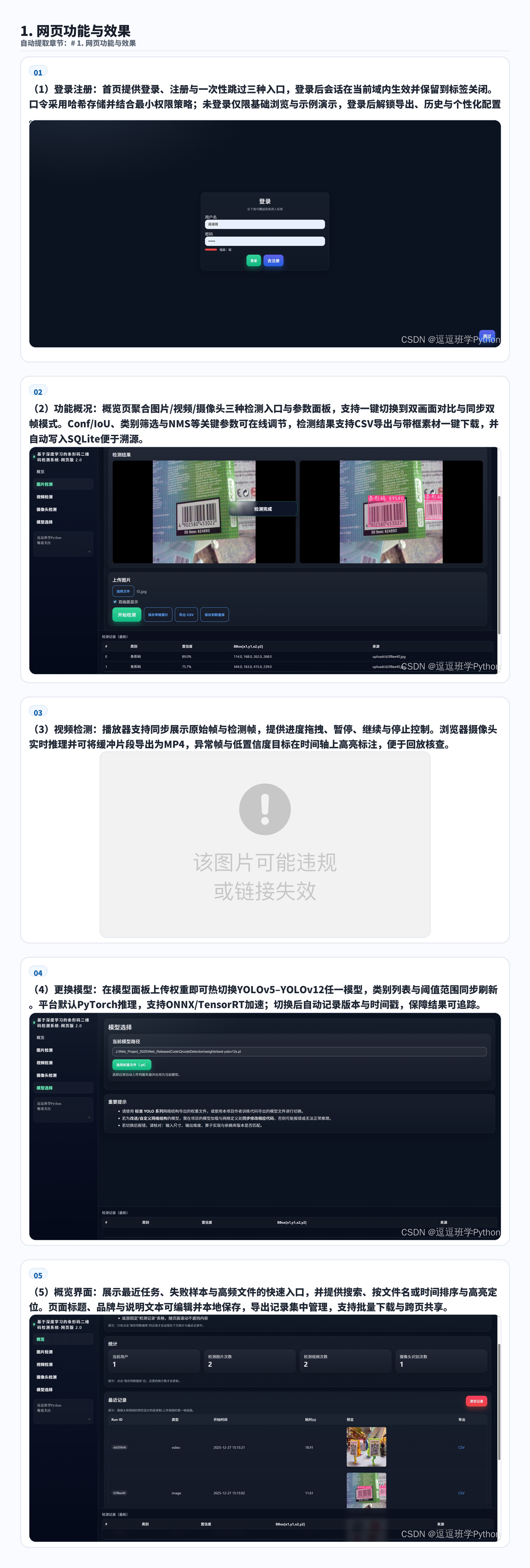输入方式:支持图片、视频、浏览器摄像头三种输入源,浏览器端实时显示检测框与置信度