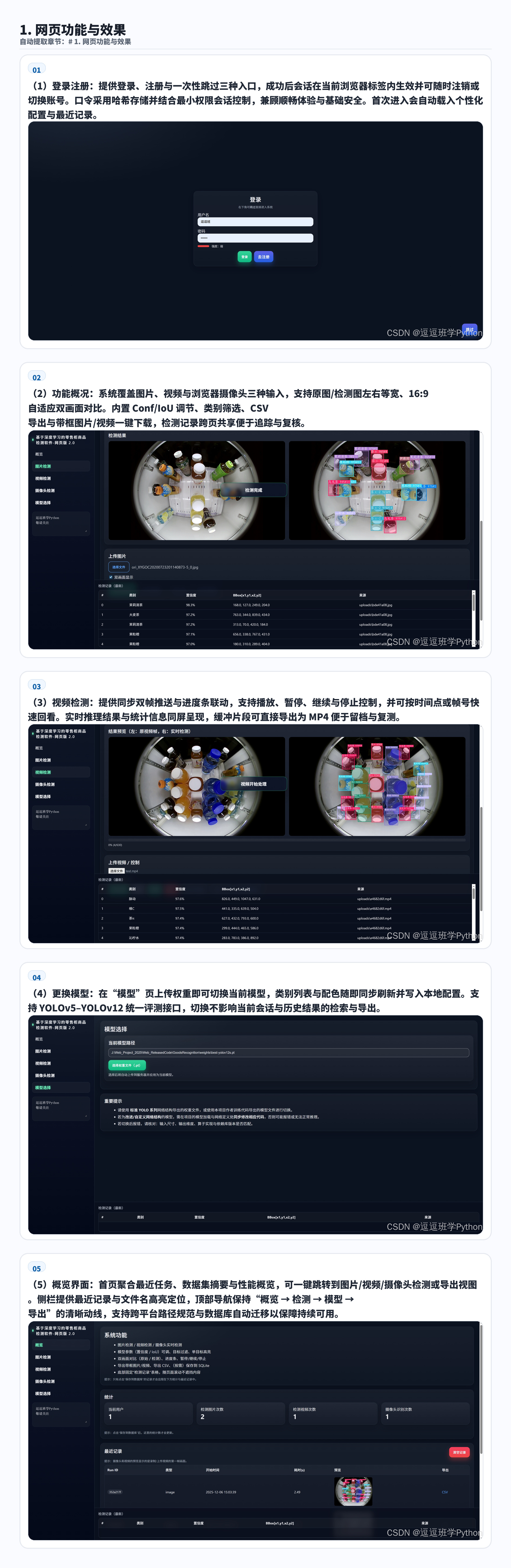 输入方式:支持图片、视频、浏览器摄像头三种输入源,浏览器端实时显示检测框与置信度