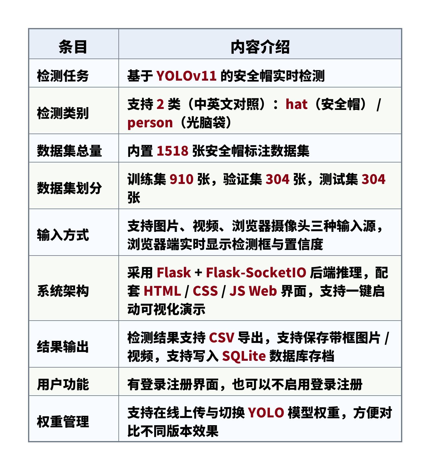 检测类别:支持 2 类(中英文对照):hat(安全帽) / person(光脑袋)