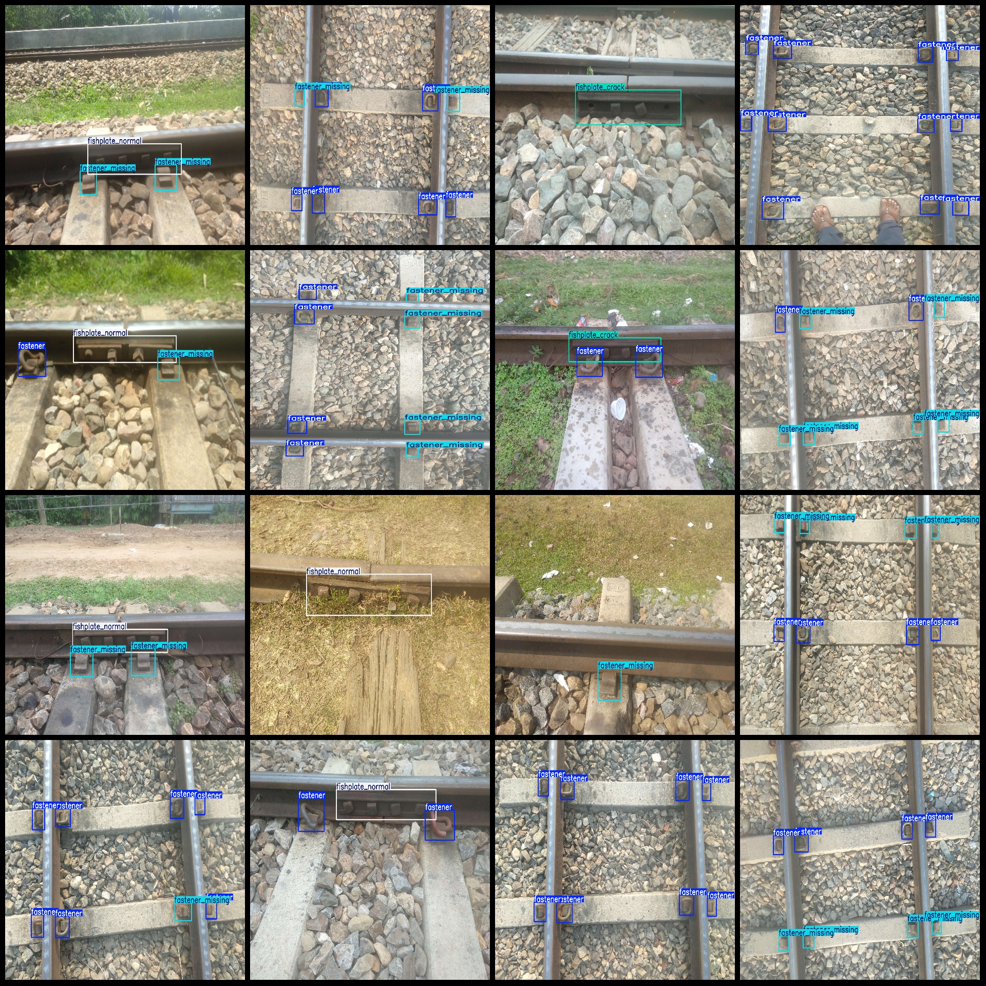 标注类别名称(注意yolo格式类别顺序不和这个对应,而以labels文件夹classes.txt为准):["fastener","fastener_missing","fishplate_crack","fishplate_normal"]