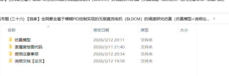 电机专题 (三十六) 【独家】全网最全基于模糊PID控制实现的无刷直流电机(BLDCM)的调速研究仿真(仿真模型+说明论文+使用注意事项+绘图代码)