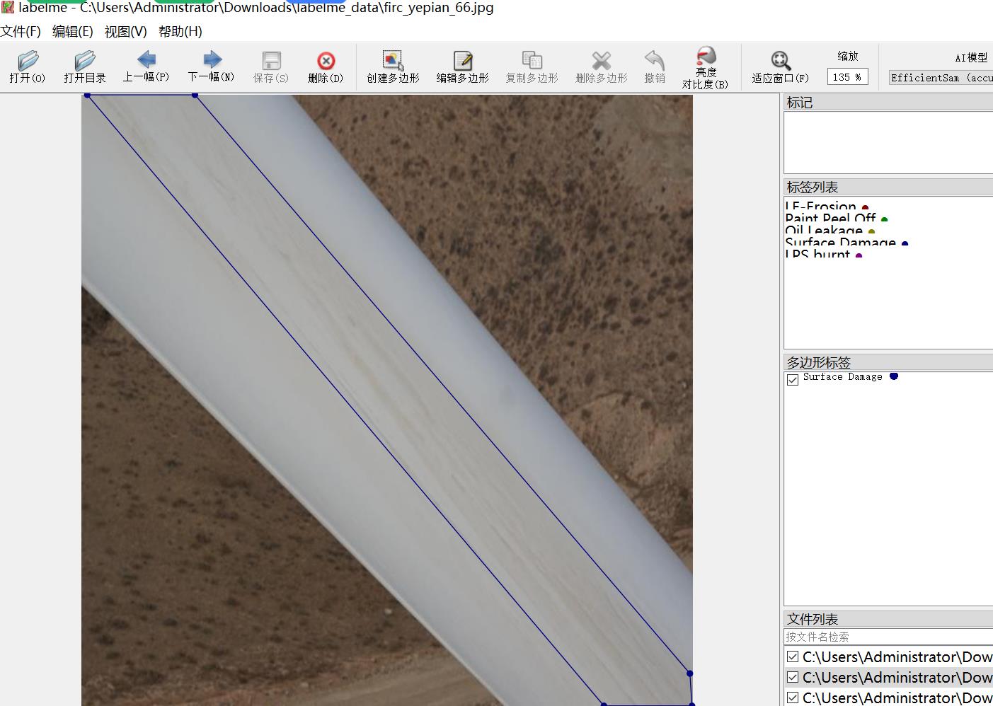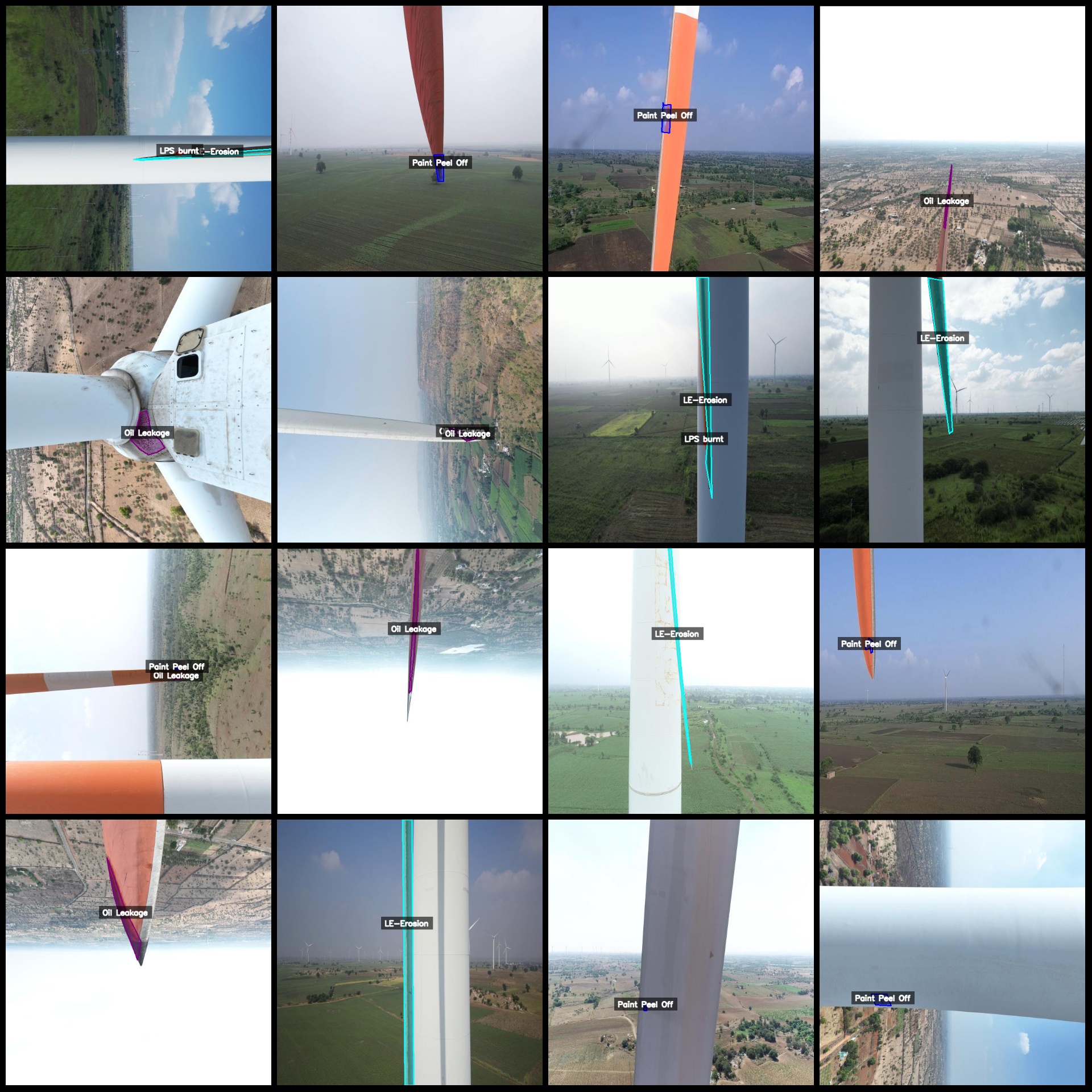 标注类别名称:["LE-Erosion","Oil Leakage","Surface Damage","Crack","Paint Peel Off","LPS burnt","Lightning-Strike"]