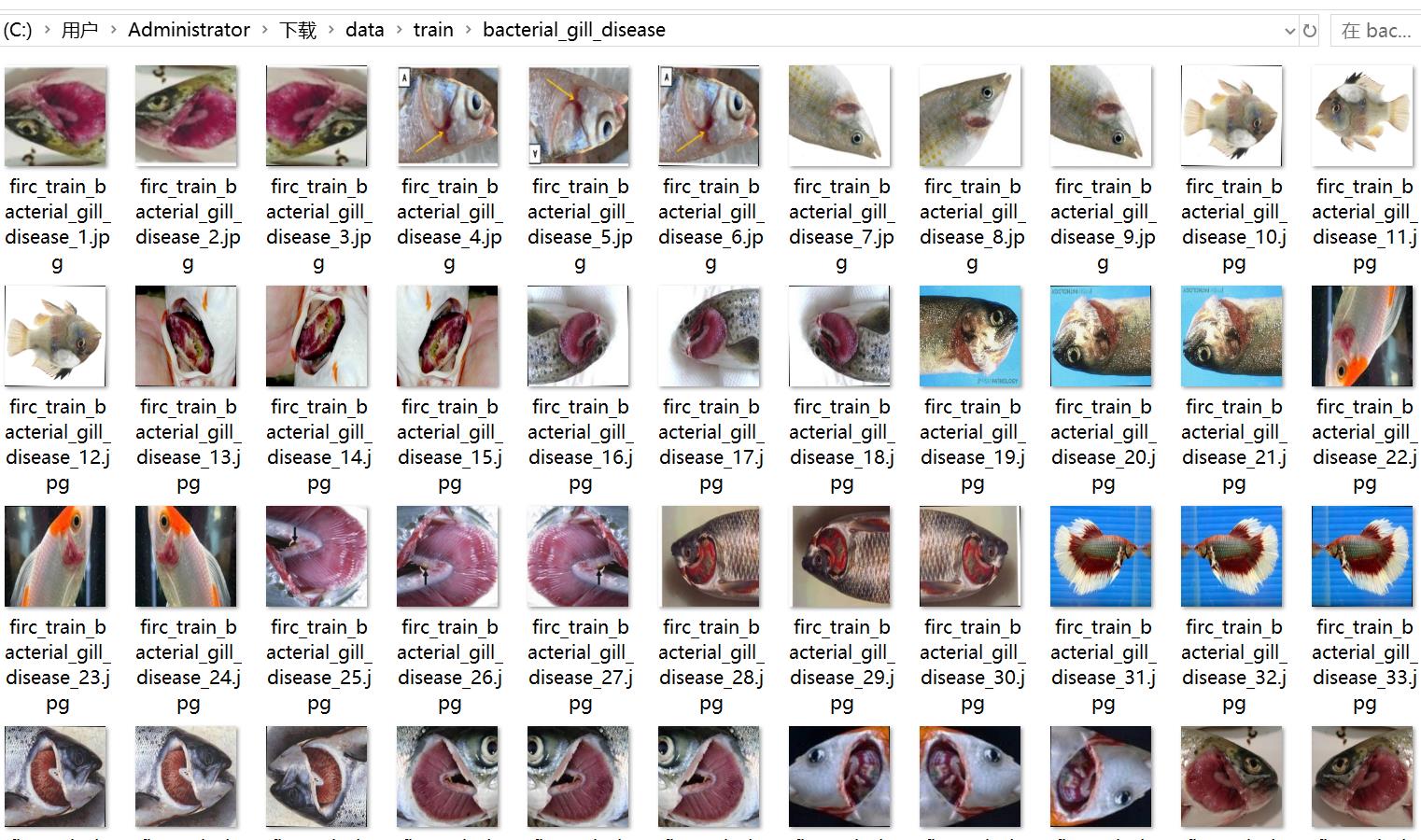 - bacterial_gill_disease(细菌性鳃病)训练集图片数:135