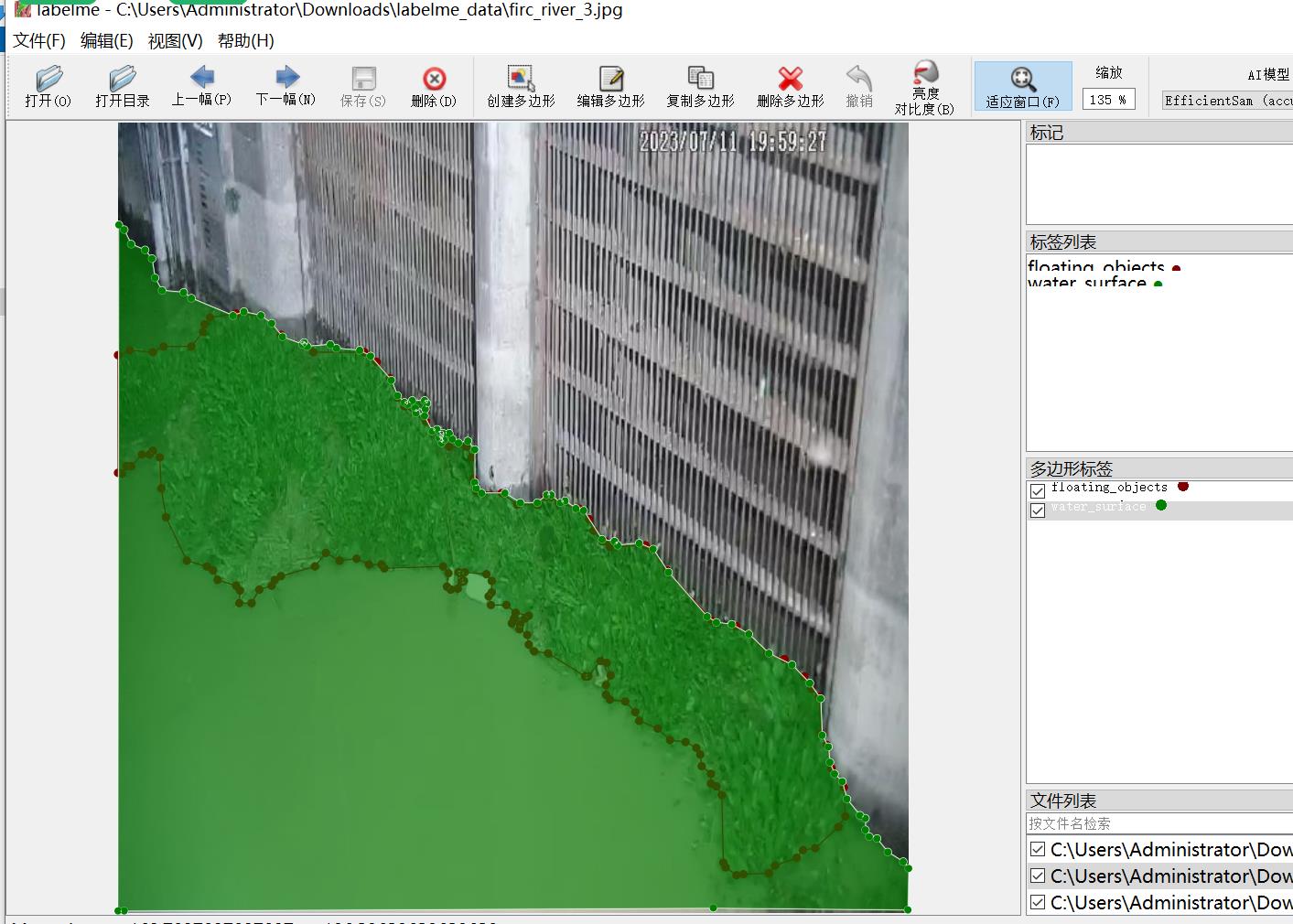 标注类别名称:["floating_objects","water_surface"]