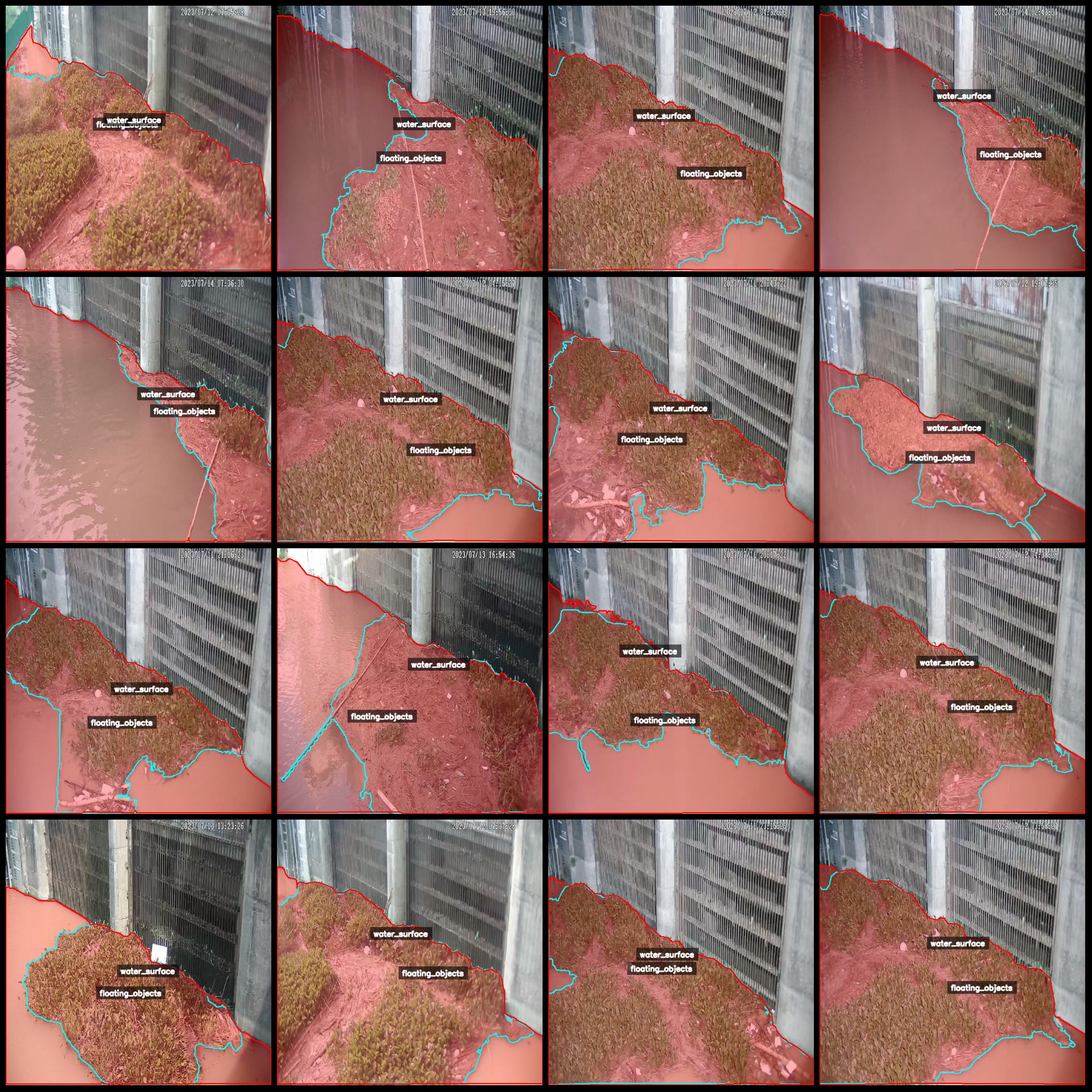 注意数据集图片无增强,但是图片都来自同一个河道口不同时间段水面漂浮物聚集情况