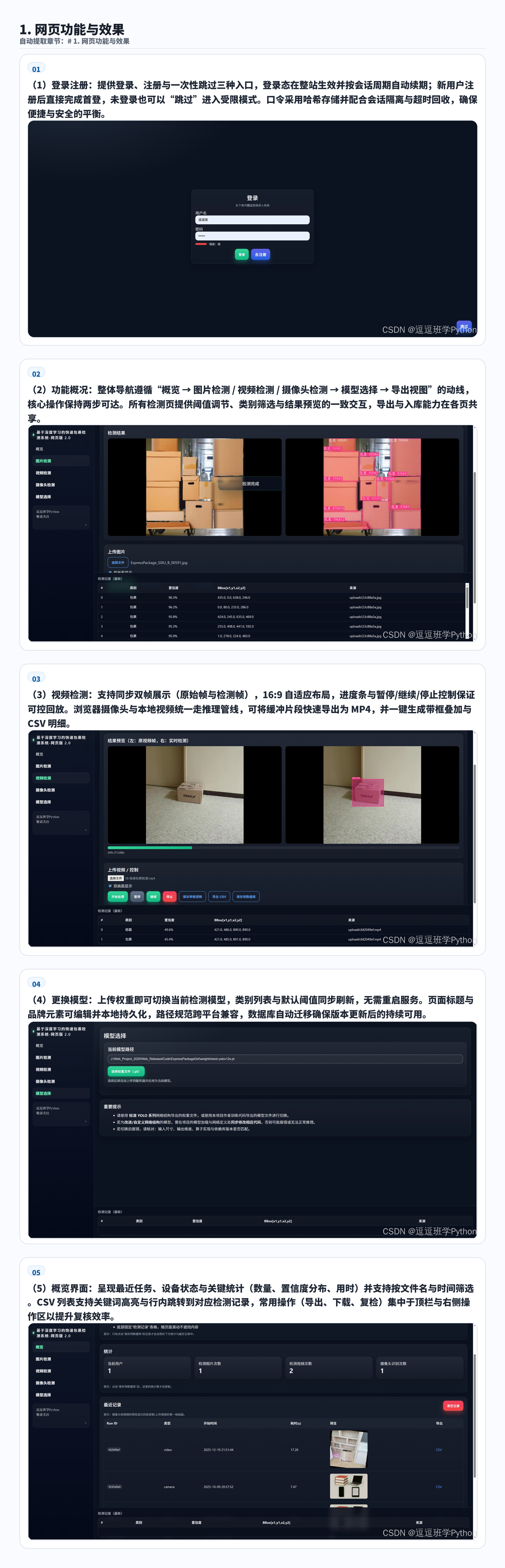 输入方式:支持图片、视频、浏览器摄像头三种输入源,浏览器端实时显示检测框与置信度