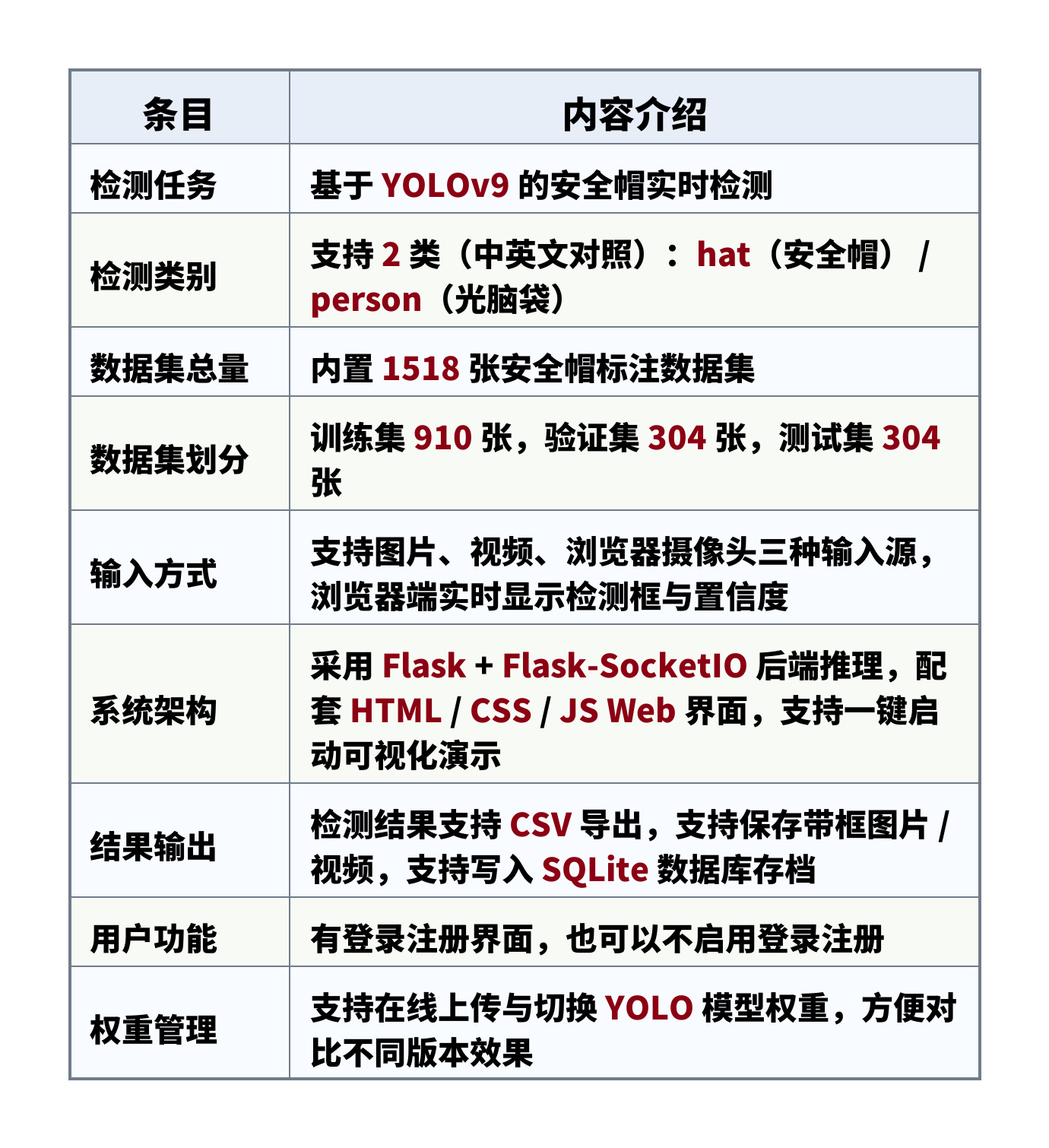 检测类别:支持 2 类(中英文对照):hat(安全帽) / person(光脑袋)