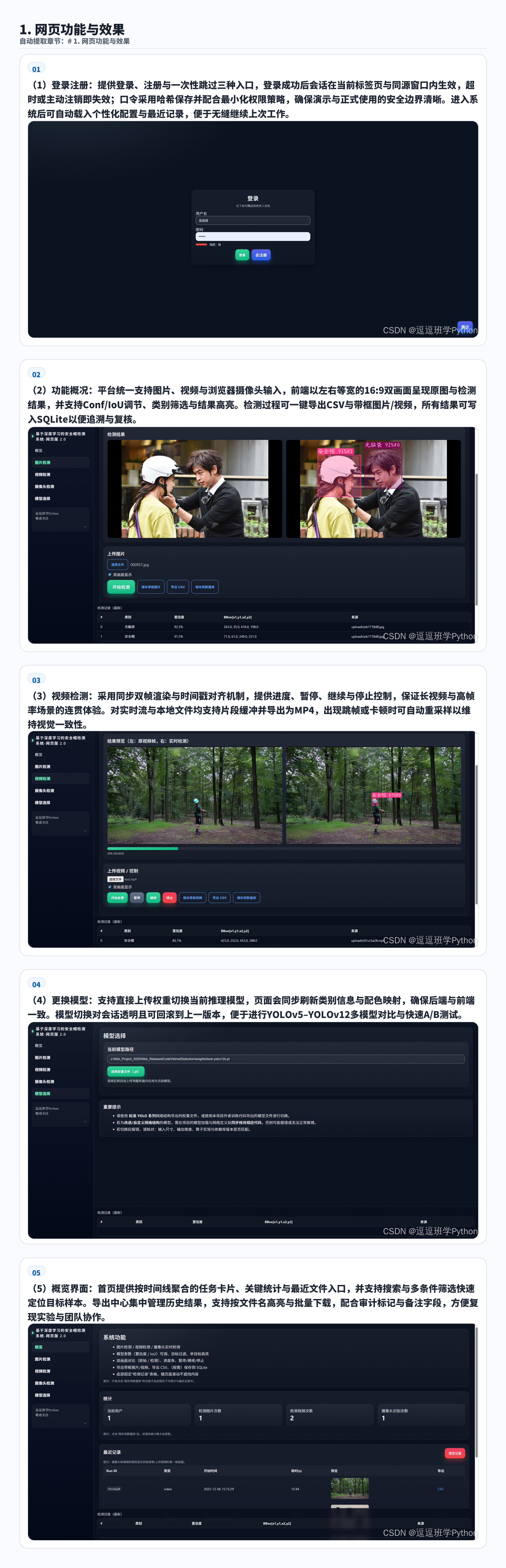 权重管理:支持在线上传与切换 YOLO 模型权重,方便对比不同版本效果