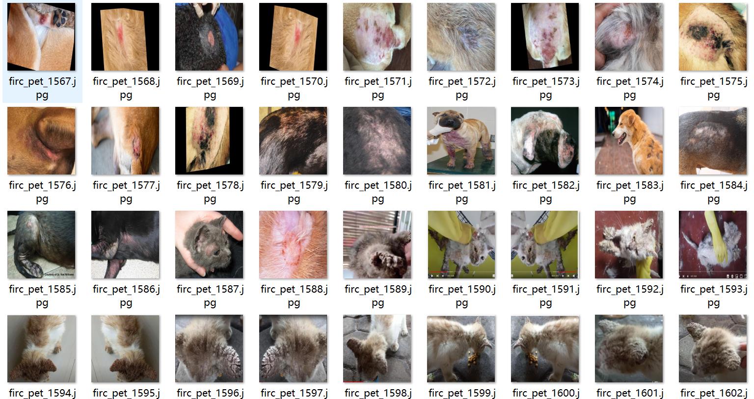 注意数据集中1/3是原图,剩余为增强图片,主要是猫狗皮肤病