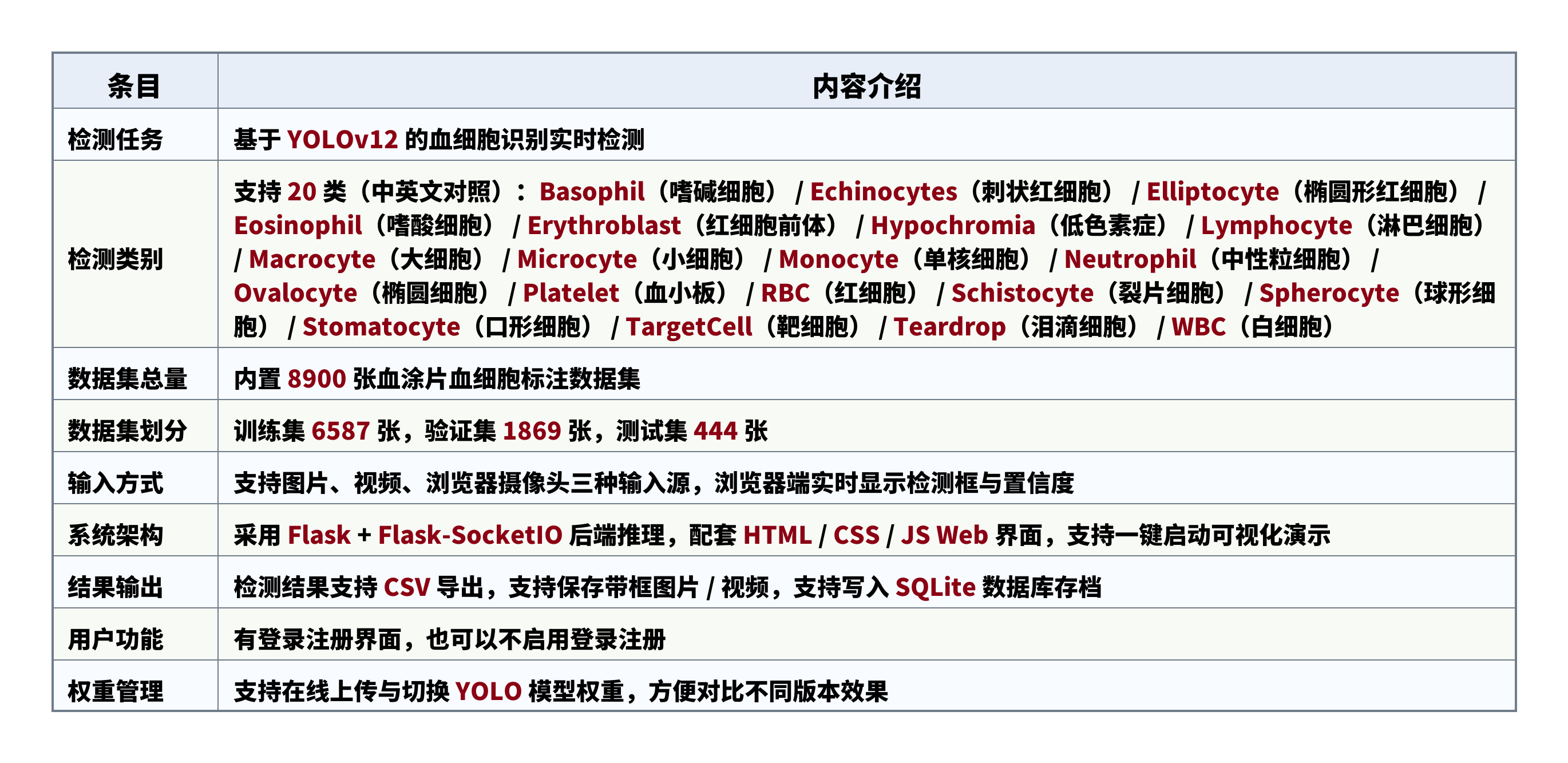 - 检测任务:基于 YOLOv12 的血细胞识别实时检测