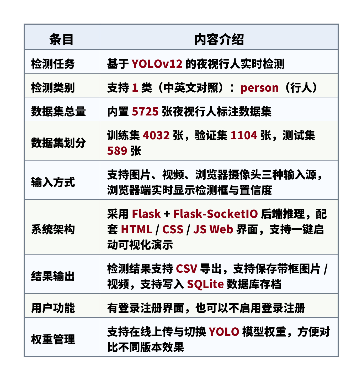 - 数据集总量:内置 5725 张夜视行人标注数据集