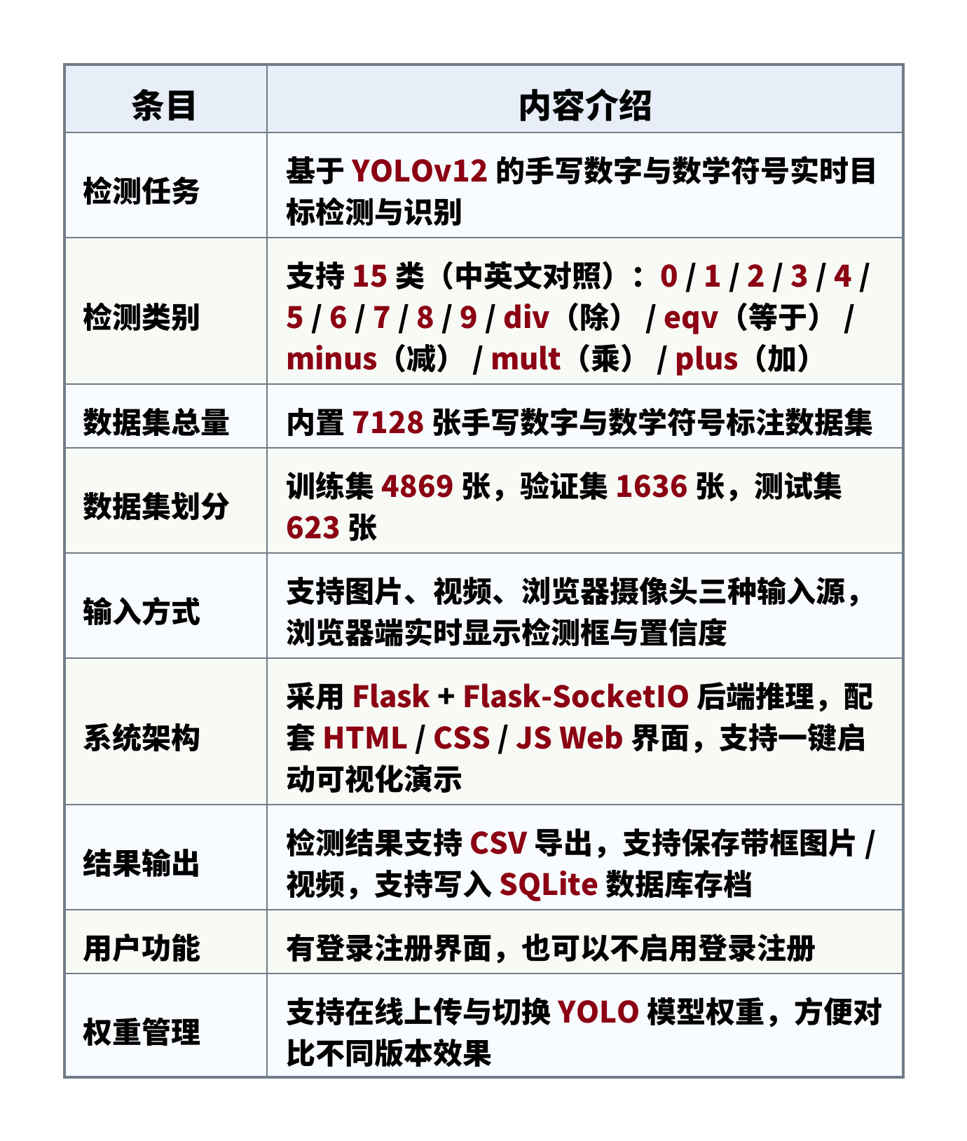 - 数据集总量:内置 7128 张手写数字与数学符号标注数据集