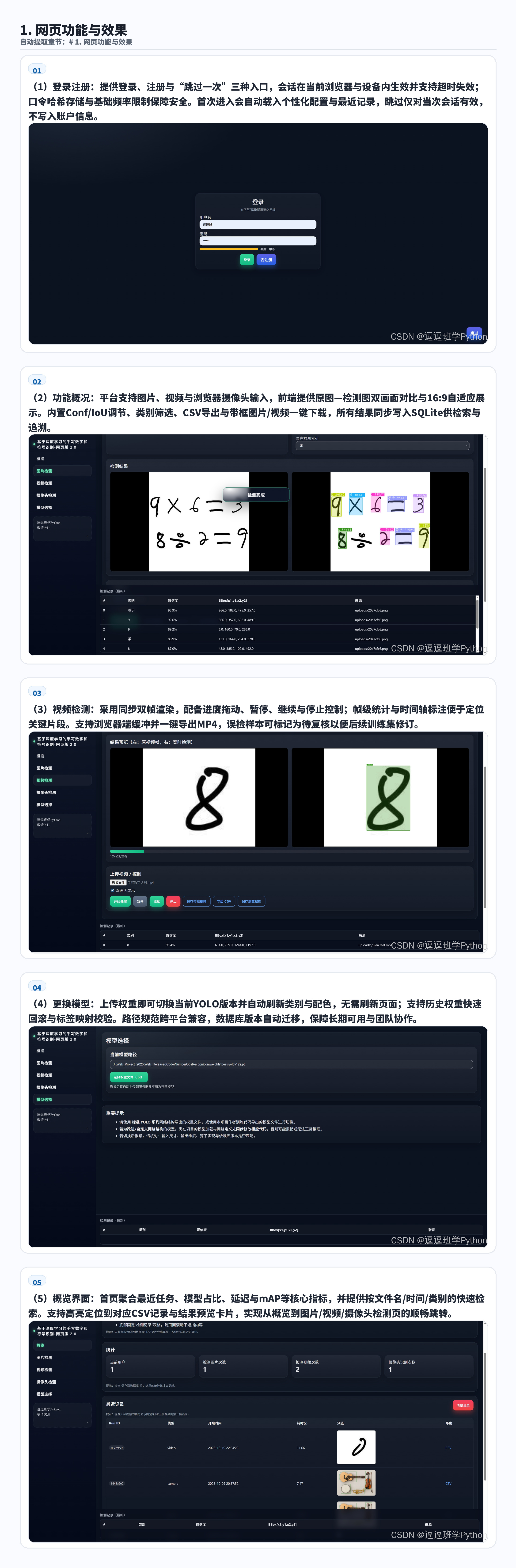 - 检测类别:支持 15 类(中英文对照):0 / 1 / 2 / 3 / 4 / 5 / 6 / 7 / 8 / 9 / div(除) / eqv(等于) / minus(减) / mult(乘) / plus(加)