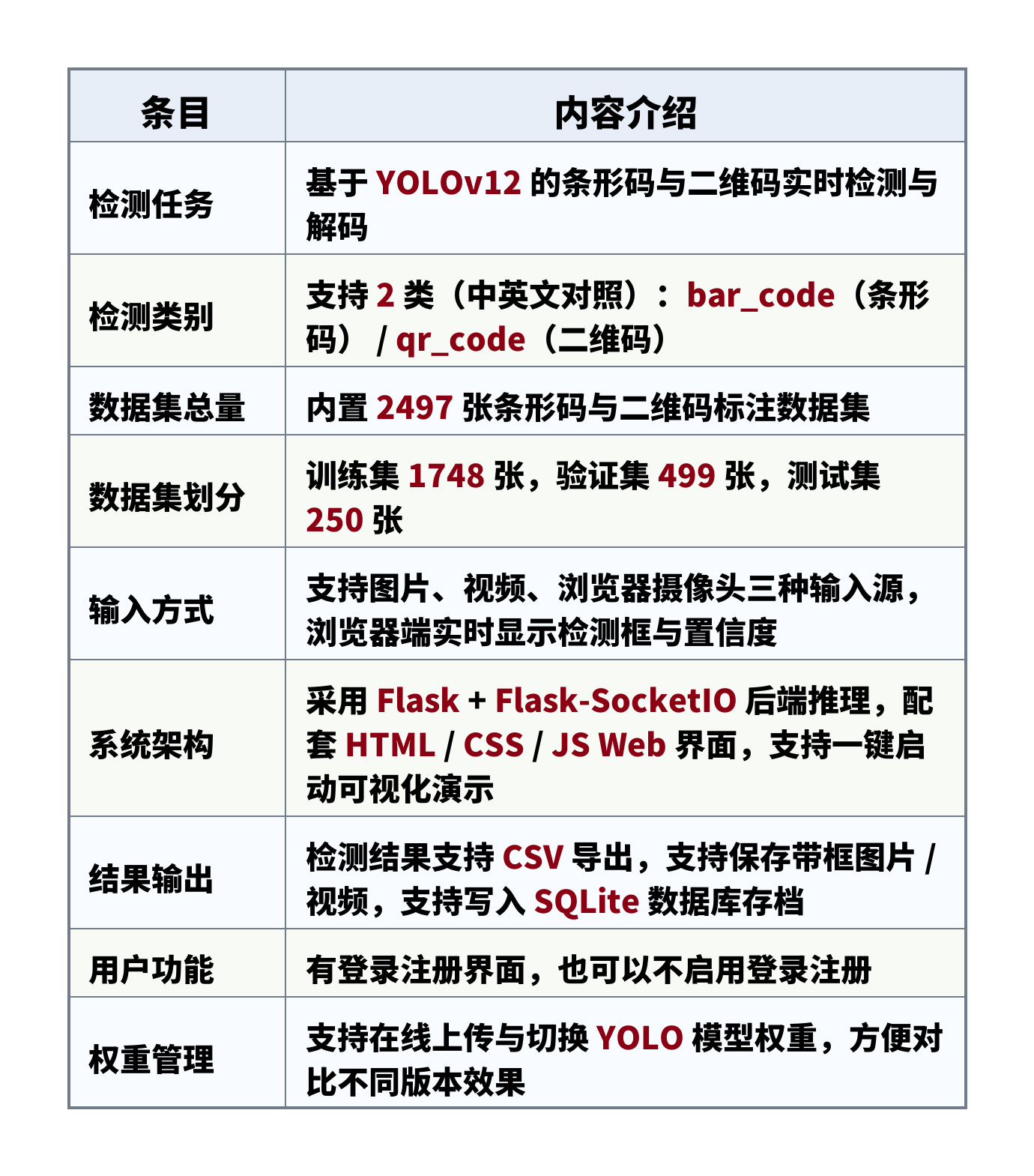 - 数据集总量:内置 2497 张条形码与二维码标注数据集