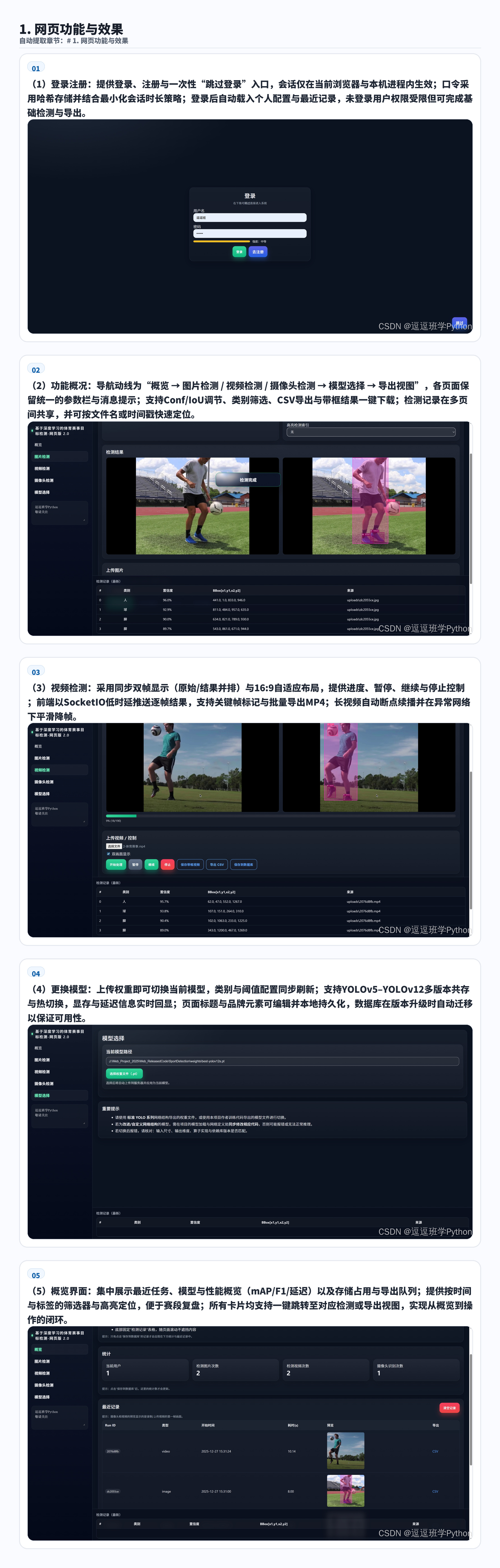 - 检测类别:支持 3 类(中英文对照):ball(球) / foot(脚) / person(人)