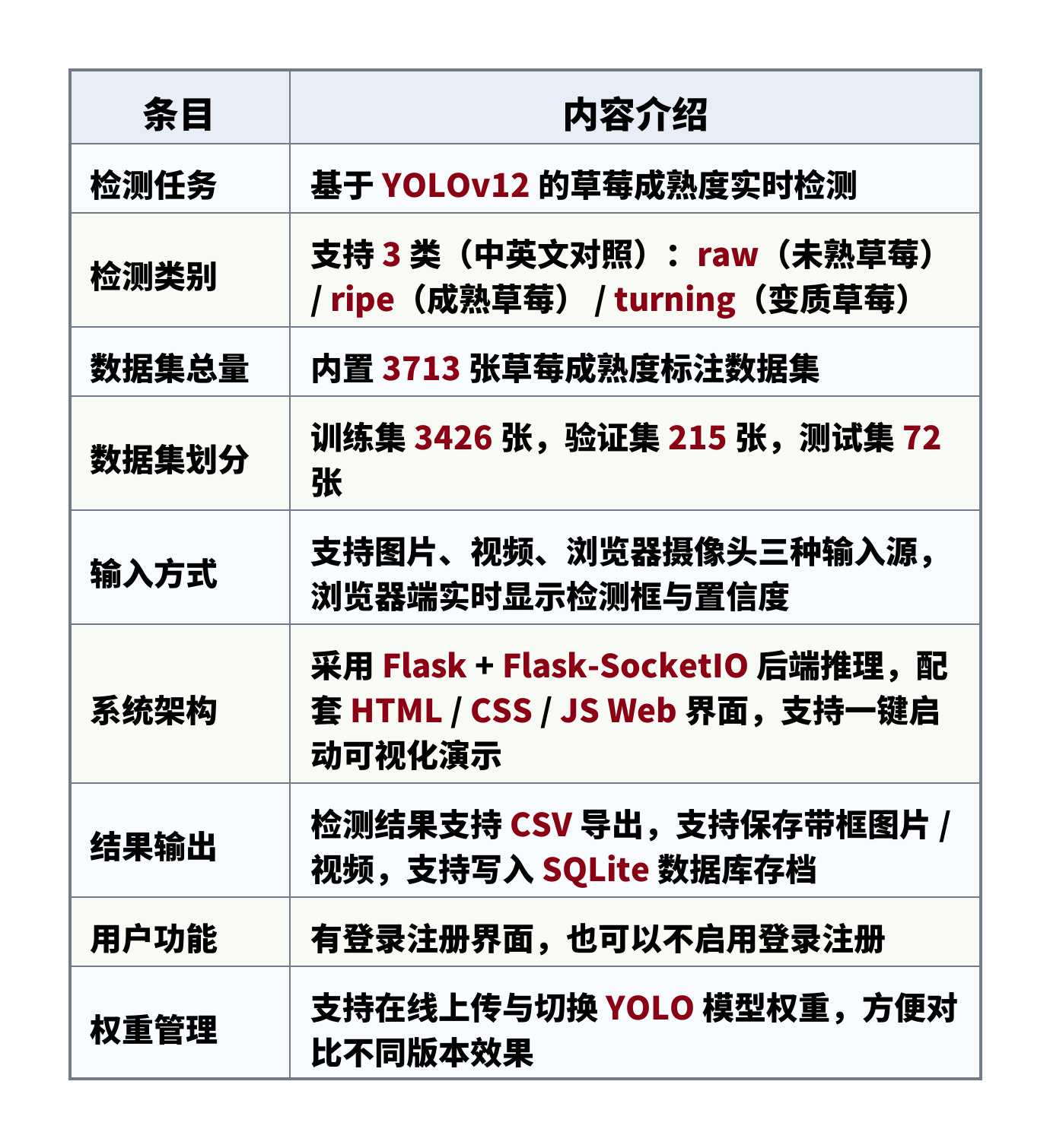 - 数据集总量:内置 3713 张草莓成熟度标注数据集