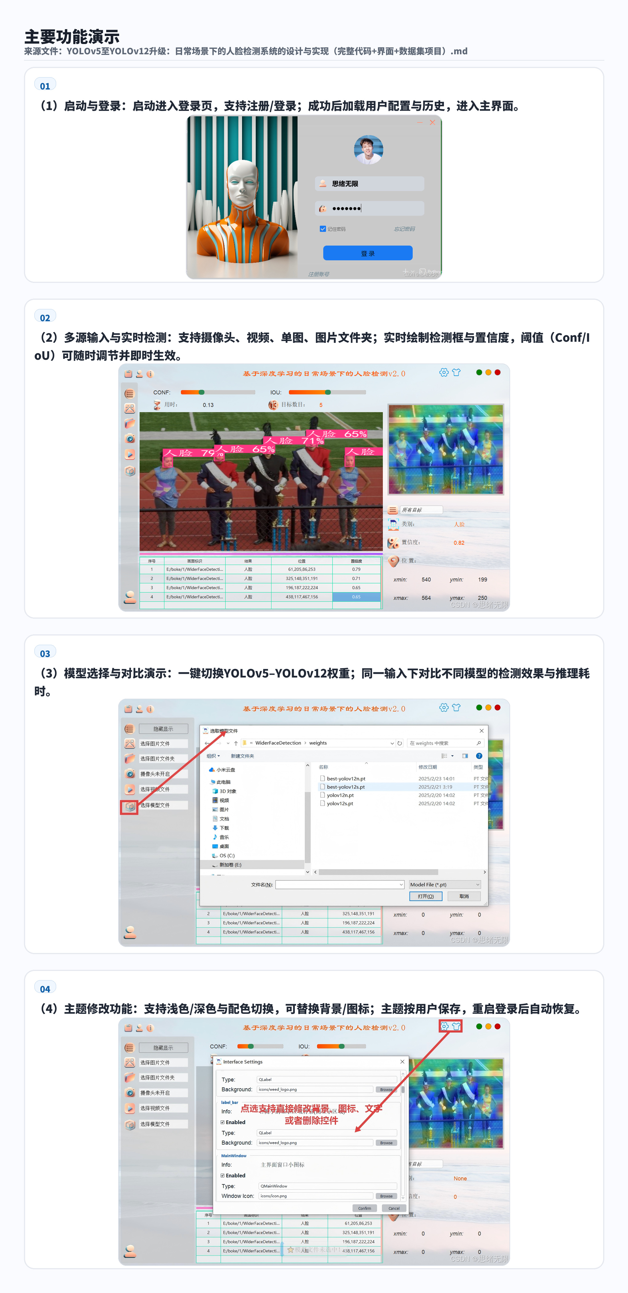 系统架构:采用 PySide6 构建可视化 UI 界面,集成模型推理、结果展示与交互操作,支持一键启动演示