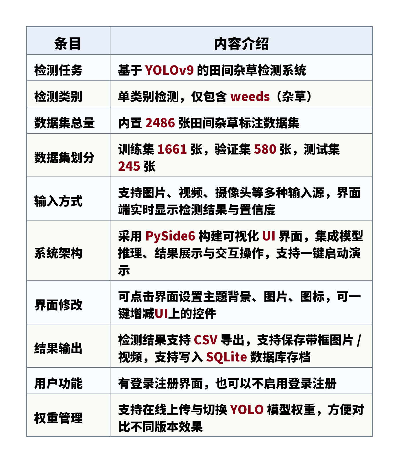 数据集总量:内置 2486 张田间杂草标注数据集