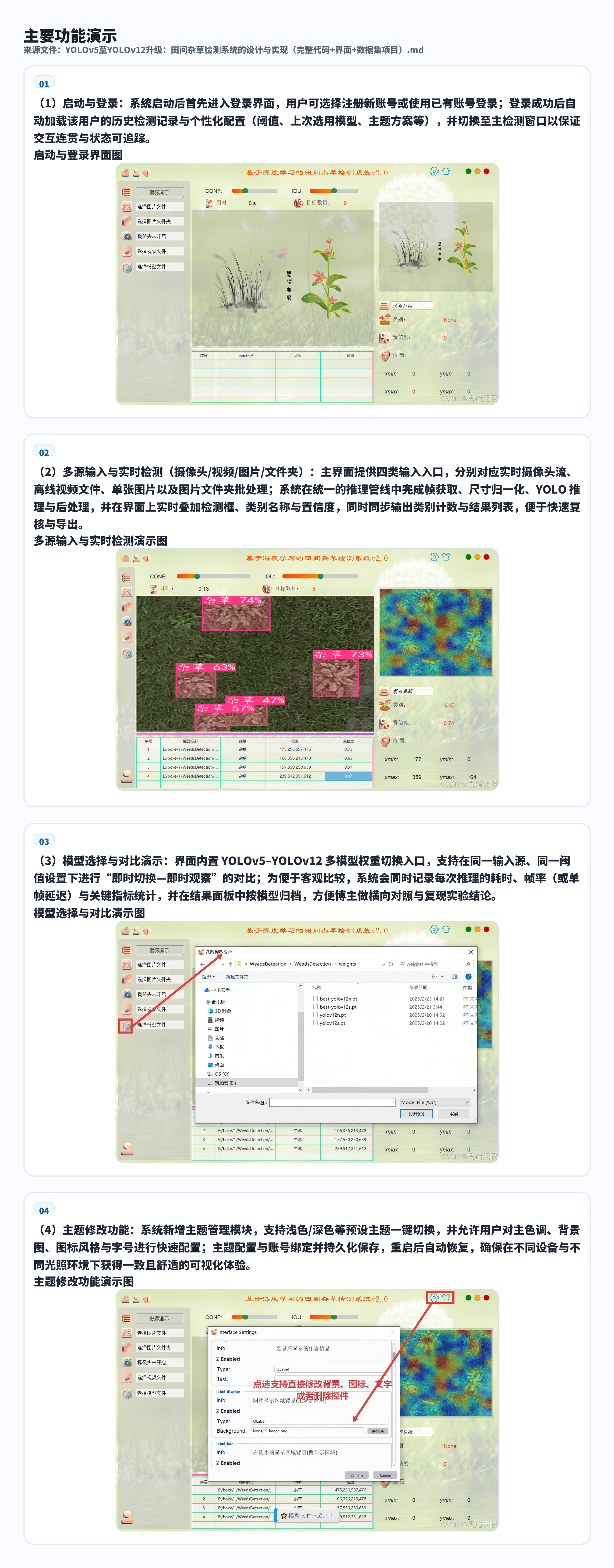系统架构:采用 PySide6 构建可视化 UI 界面,集成模型推理、结果展示与交互操作,支持一键启动演示