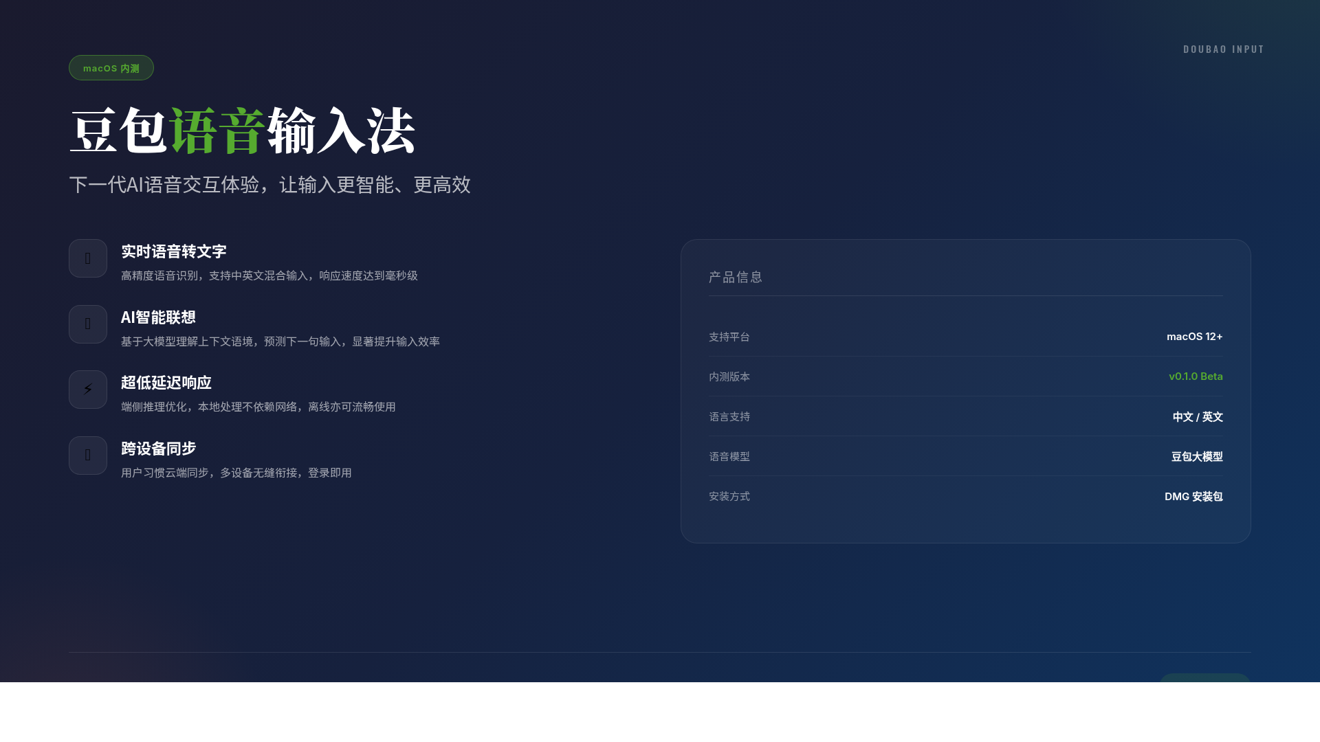 豆包语音输入法mac内测版